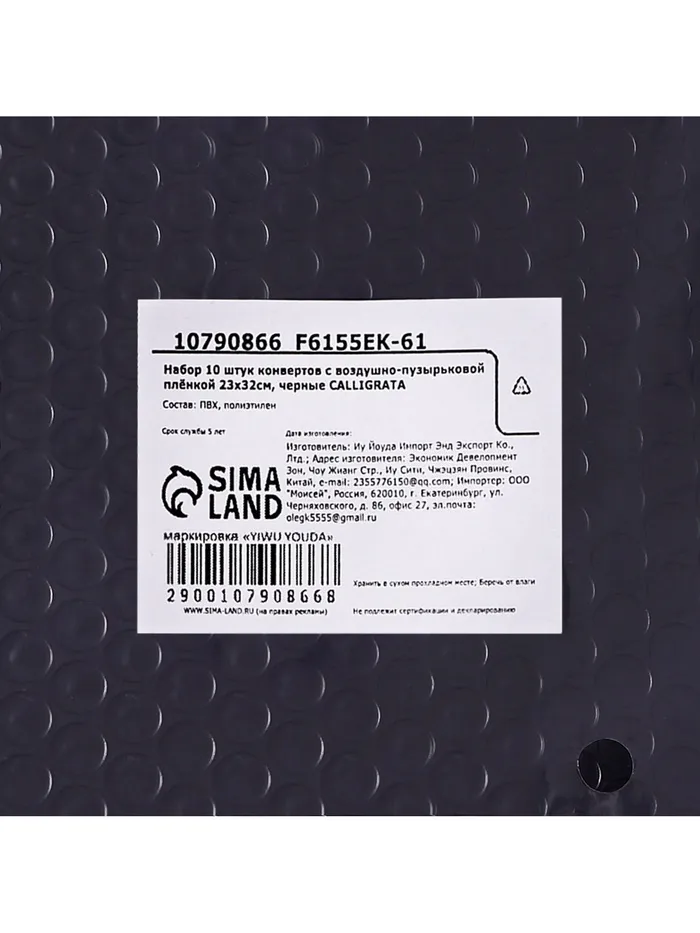 Набор 10 штук конвертов с воздушно-пузырьковой плёнкой 23х32см, черные — Характеристики
