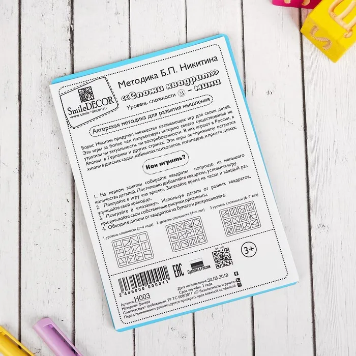 Набор 2 планшета «Сложи квадрат», 3 уровень (мини), цвета МИКС — Характеристики