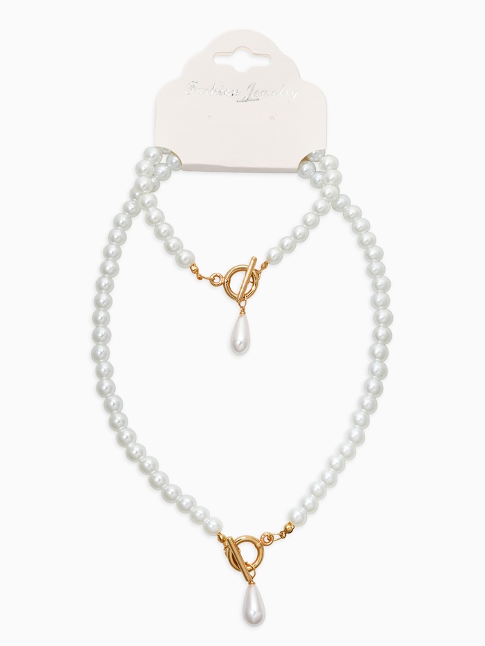 Набор 2 пред-та: бусы.браслет "Жемчуг", капелька, цвет белый в золоте L=18/42см №8 — Характеристики