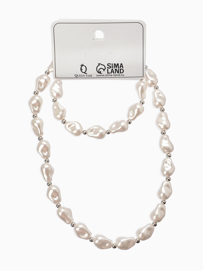 Набор 2 предмета: бусы, браслет «Жемчуг барочный. Капля», 40/18 см, белый в серебре — Характеристики