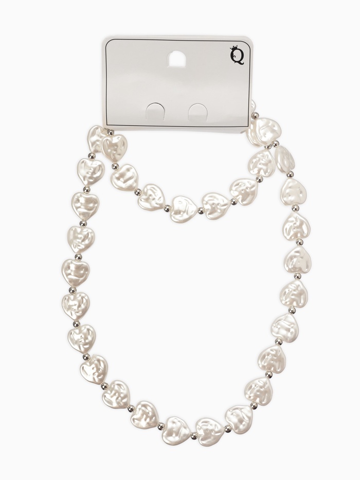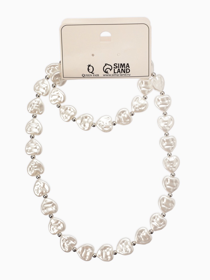 Набор 2 предмета: бусы, браслет «Жемчуг барочный. Сердечки», 40/18 см, белый в серебре — Характеристики