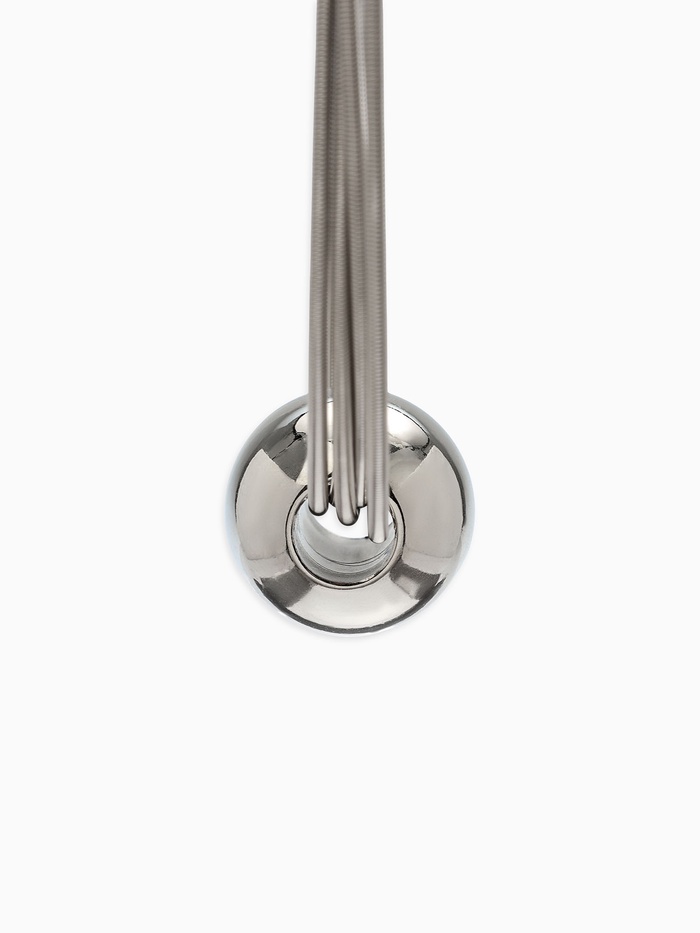 Основной акцент сделан на мелкие металлические бусинки, расположенные вдоль прозрачных шелковистых нитей. Такое расположение создает интересный оптический эффект, притягивающий взор к лицу обладательницы и раскрывающий всю глубину женской привлекательности. Лаконичные и легкие, украшения выглядят как произведение искусства, окутанное тайнами и символизмом.