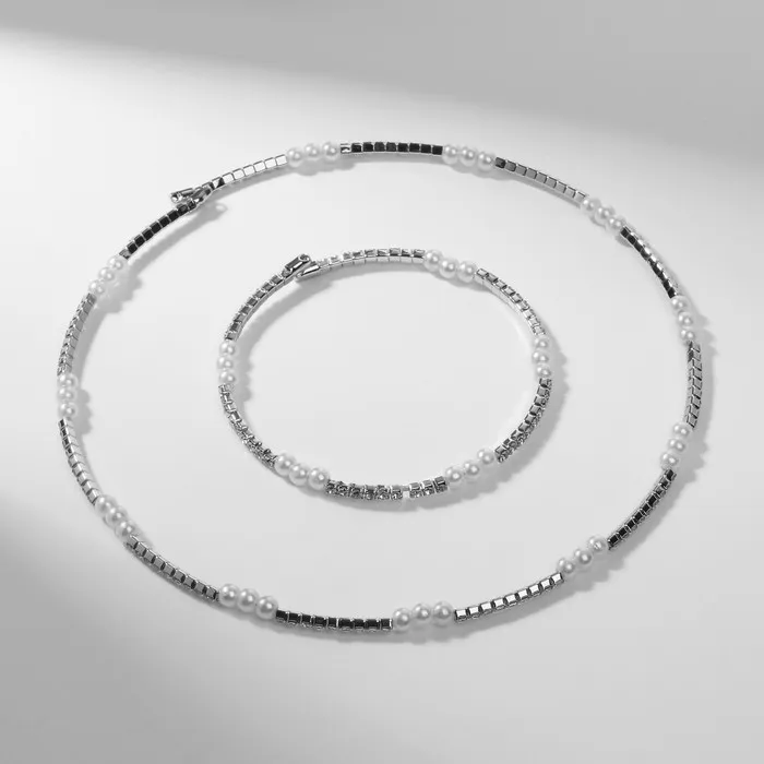 Набор 2 предмета: колье, браслет «Ноэль», бусины №4, цвет белый в серебре — Характеристики