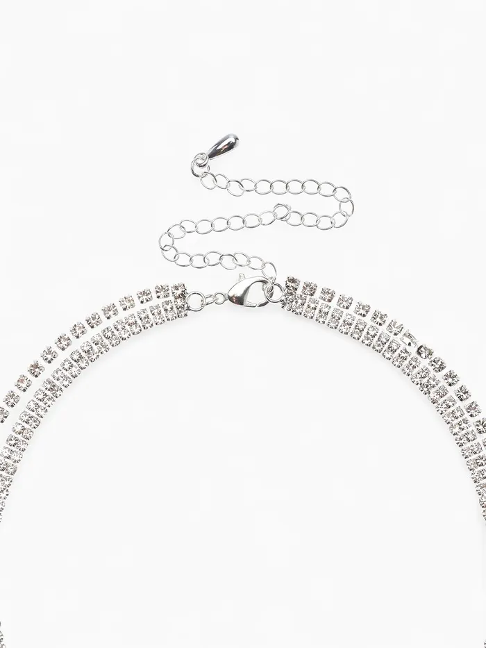 Изысканный комплект из колье-чокера и серёг в белом цвете с серебристой фурнитурой создаёт эффект нежного сияния и подчёркивает утончённость образа. Стразы, аккуратно инкрустированные в украшения, придают им лёгкий блеск, который привлекает внимание и добавляет праздничного настроения, не перегружая стиль.