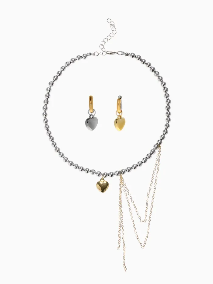 Тематические сердечные детали в украшениях добавляют им нежности и символичности, делая комплект подходящим для тех, кто хочет носить не только стиль, но и эмоции. Лёгкий и удобный в носке комплект отлично подойдёт для повседневной жизни и важных событий, позволяя трансформировать образ без лишних усилий.