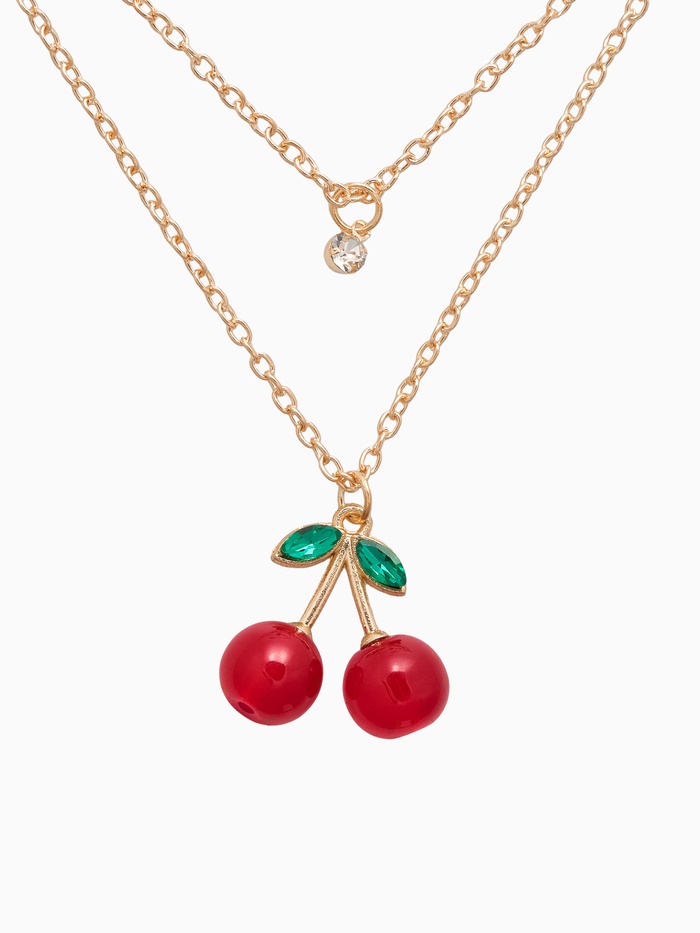 В теплоте красного акцента, оттенённого золотом, набор с серьгами и кулоном воплощает тему еды сквозь вишенку со стразинкой, где формы 50 и 40 см с диаметром 4 см развивают мотивацию фруктовой свежести. Золотистая фурнитура и полистоун вставки подчёркивают женственность, делая композицию многогранной для дневных и вечерних сцен.