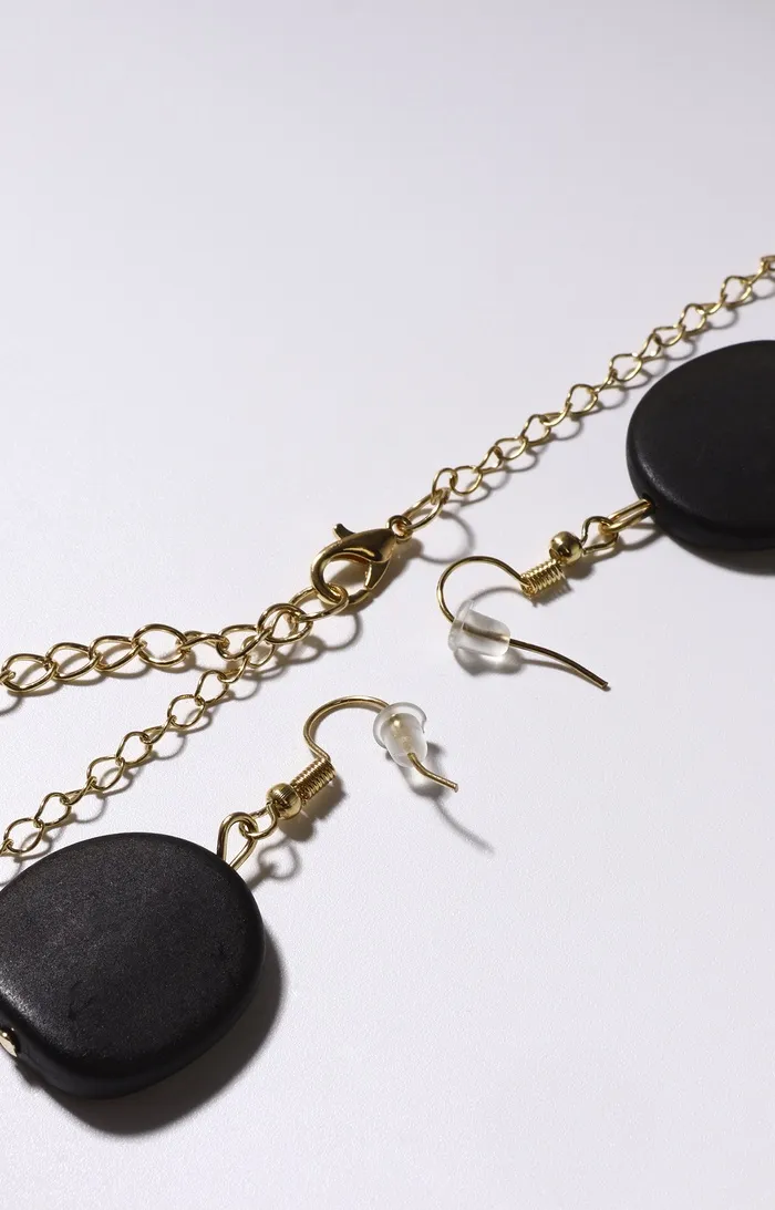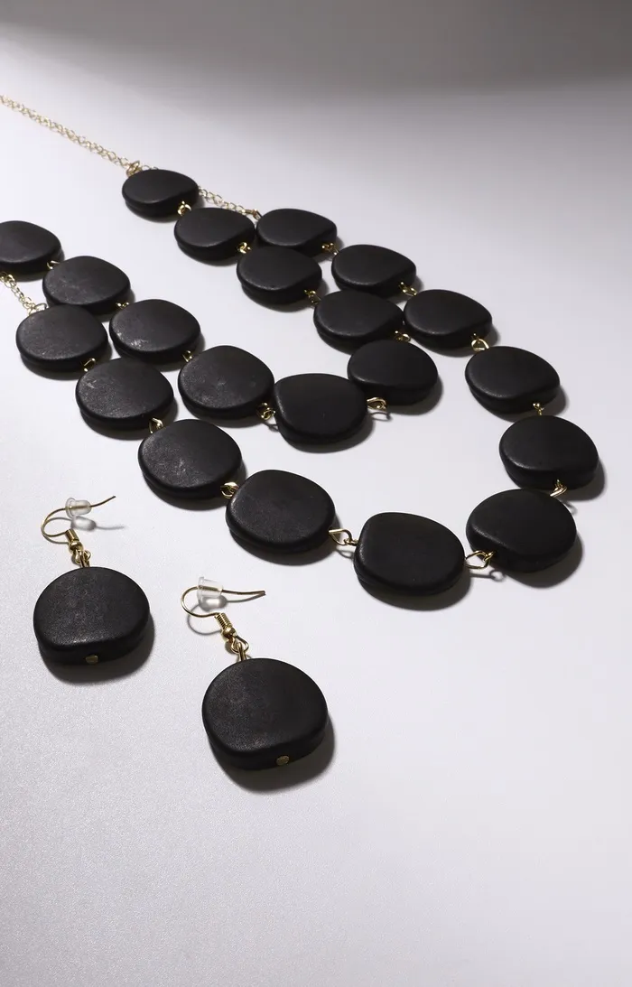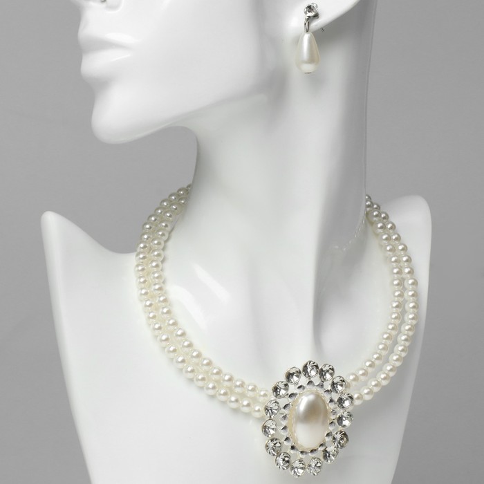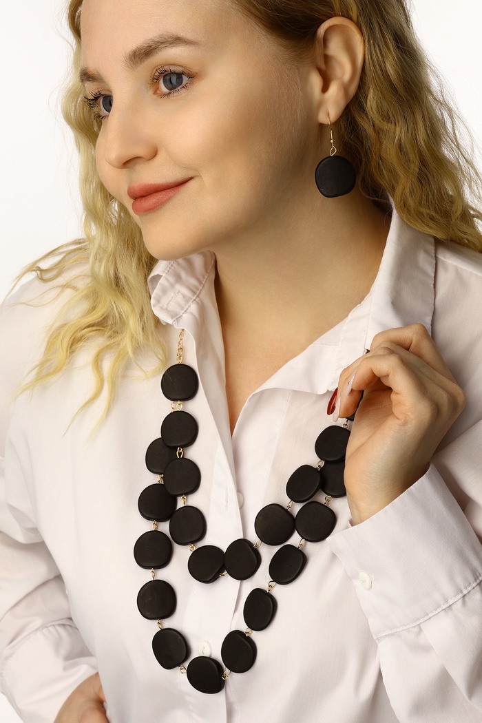 Набор 2 предмета: серьги, бусы «Нежность форм», 2 яруса, цвет чёрный, 50 см — Характеристики