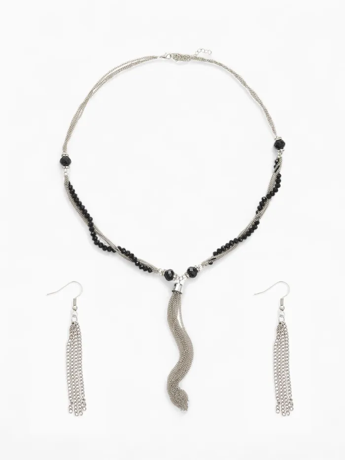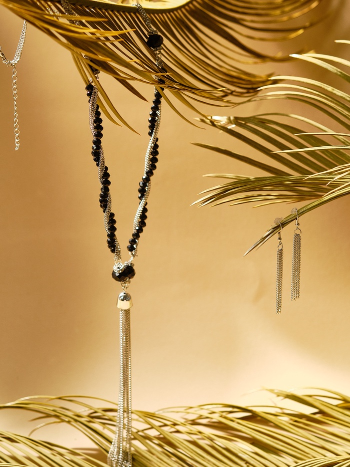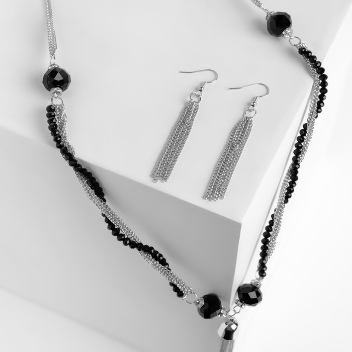 Набор 2 предмета: серьги, бусы «Унисон» накрученность, чёрный в серебре, 60 см — Характеристики