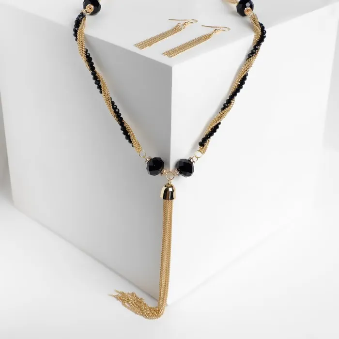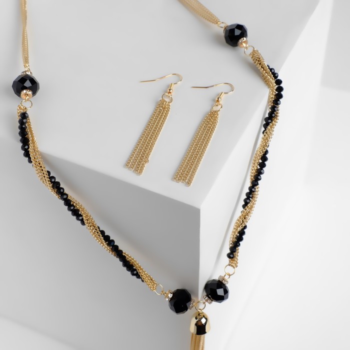 Набор 2 предмета: серьги, бусы «Унисон» накрученность, чёрный в золоте, 60 см — Характеристики