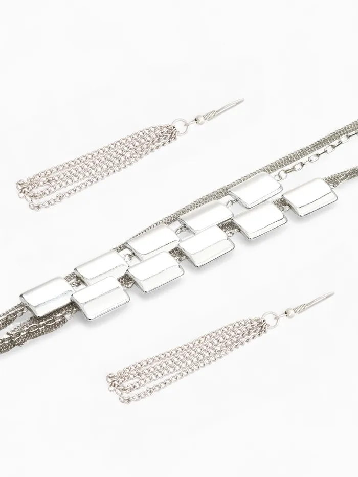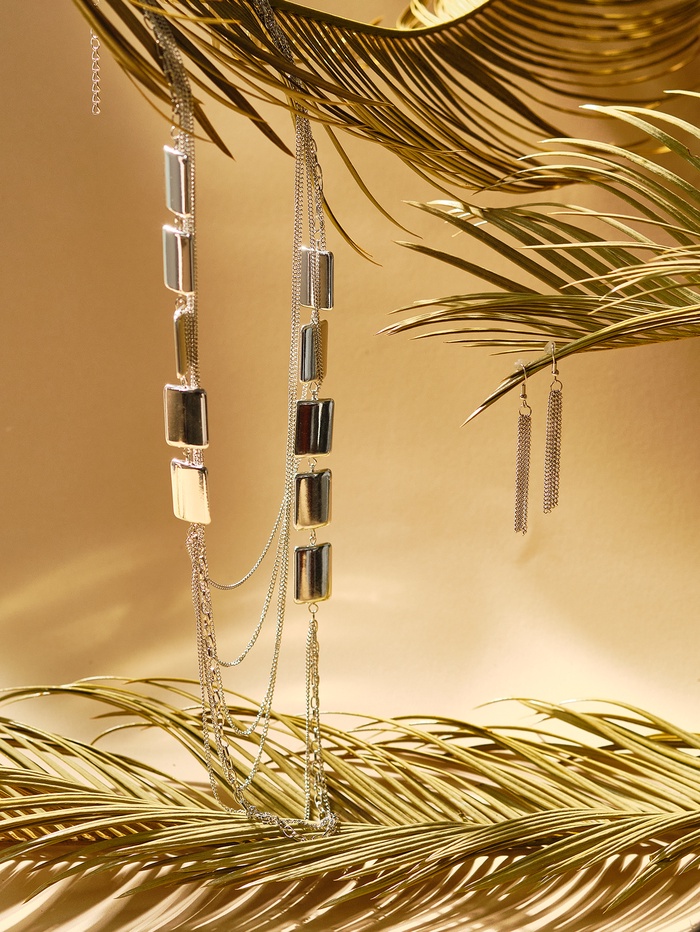 Набор 2 предмета: серьги, бусы «Унисон» прямоугольники, цвет серебро, 80 см — Характеристики