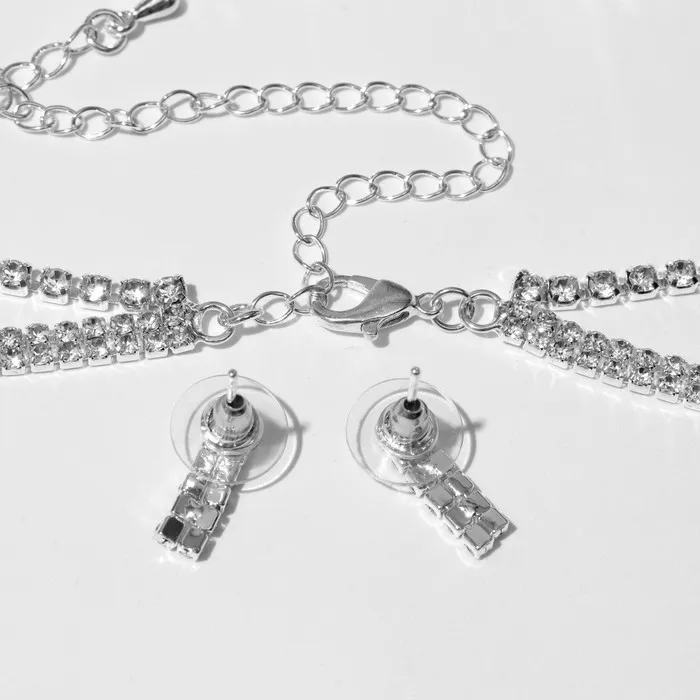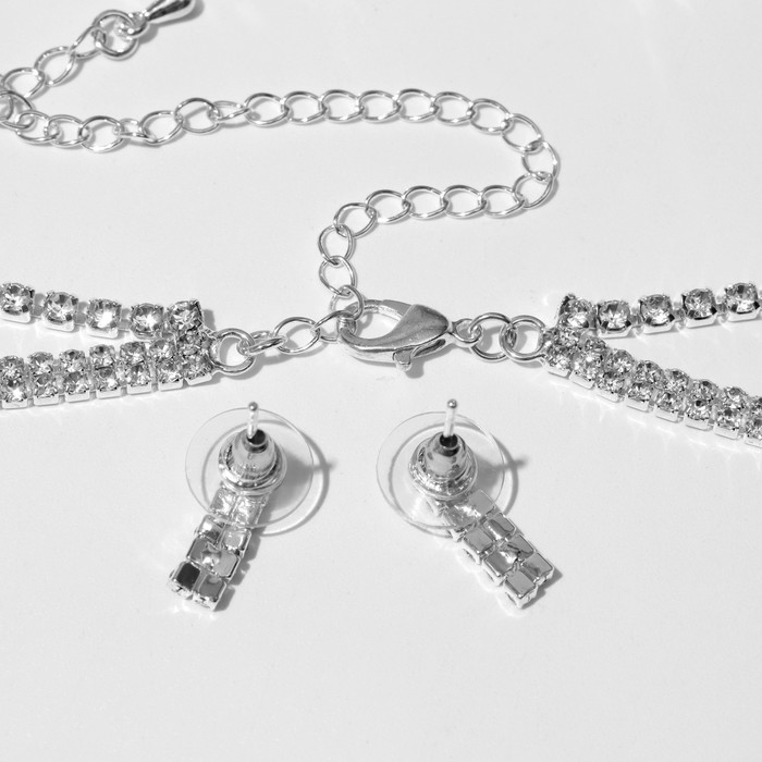 Набор 2 предмета: серьги, чокер «Лёд» 2 ряда, цвет белый в серебре, 44,5 см — Характеристики