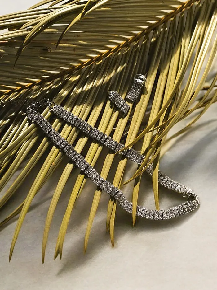 Бижутерный набор из двух предметов «Лёд» — это изысканное сочетание серёжек и чокера, которое идеально подходит для создания эффектного образа. Если носить украшения вместе, они станут прекрасным дополнением к вечернему или праздничному наряду, добавив нотку элегантности и блеска. Сережки из набора также можно носить отдельно, что делает их универсальным аксессуаром для любого случая, даже без повода. Стильный чокер добавит современной изюминки в Ваш образ.