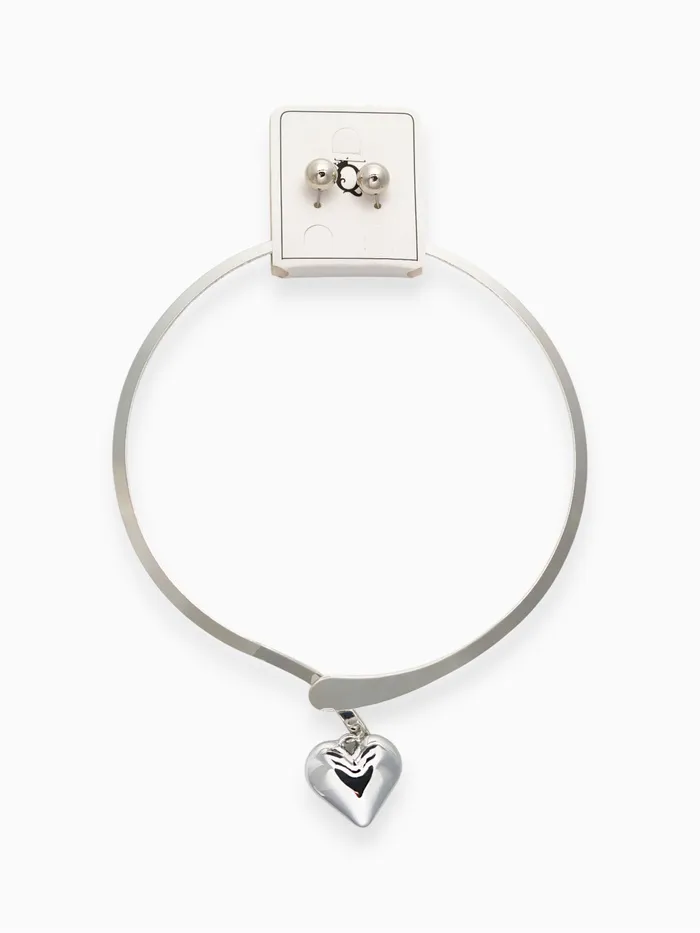Набор 2 предмета: серьги, чокер «Обруч» сердце, цвет серебро — Характеристики