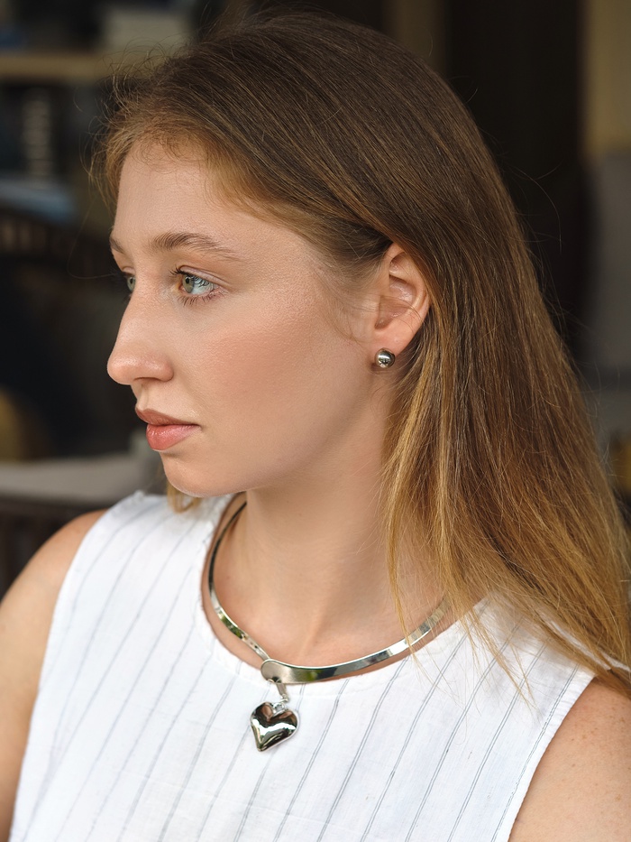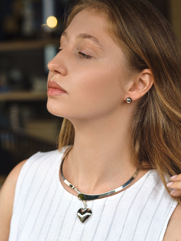 Лаконичный дизайн в форме сердца без дополнительных вставок акцентирует внимание на простоте и изяществе. Серьги и чокер легко комбинируются между собой, создавая гармоничный образ, который подчеркнёт вашу индивидуальность и вкус. Серебряная фурнитура отличается прочностью и долговечностью, что гарантирует долгие годы радости от использования.