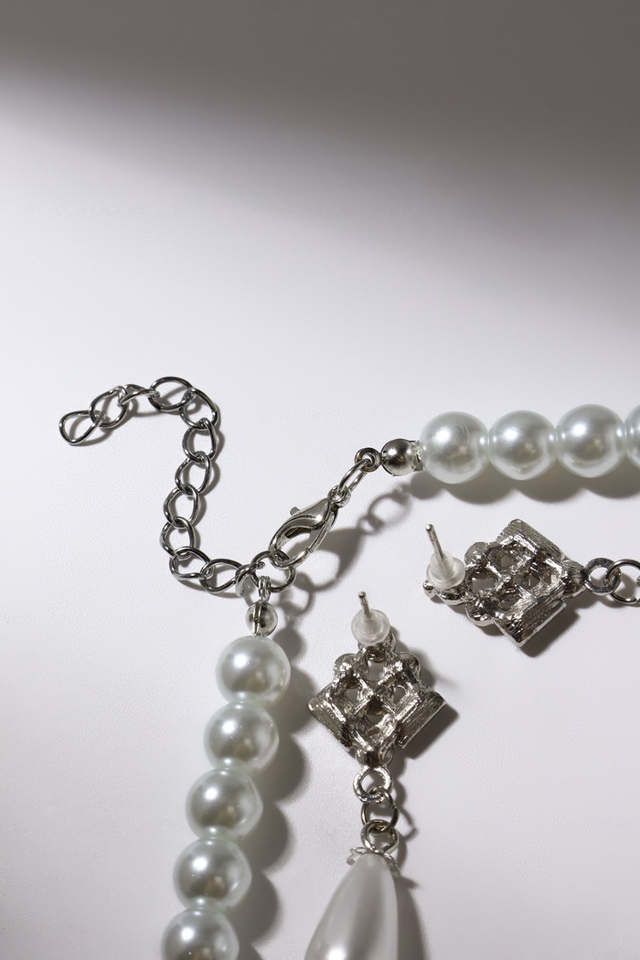 Набор 2 предмета: серьги, колье «Антуанетта» гранж, цвет белый в серебре, 40 см — Характеристики