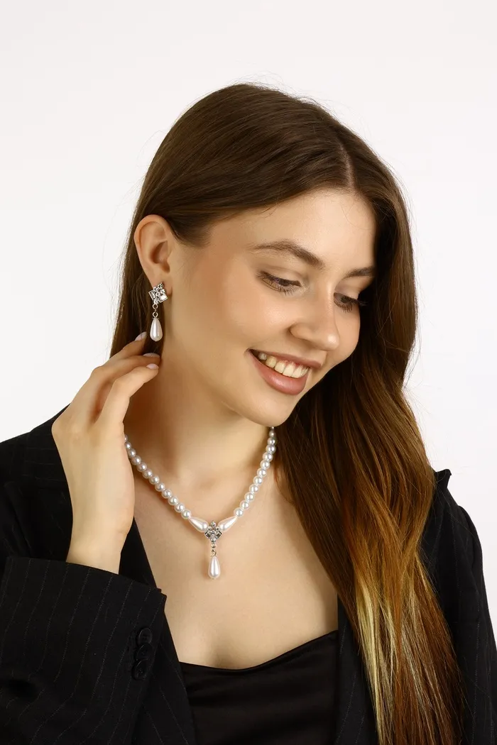 Бижутерный набор из двух предметов: серьги и колье — идеальное дополнение к вашему образу! Этот стильный аксессуар можно носить как вместе, так и по отдельности. Благодаря высококачественным материалам и профессиональному исполнению, наш набор станет изюминкой вашего гардероба. Добавьте его в свою коллекцию украшений и наслаждайтесь восхищёнными взглядами окружающих!