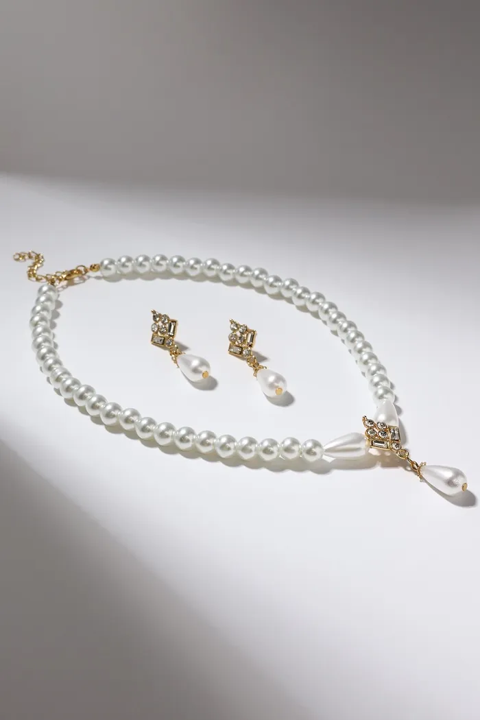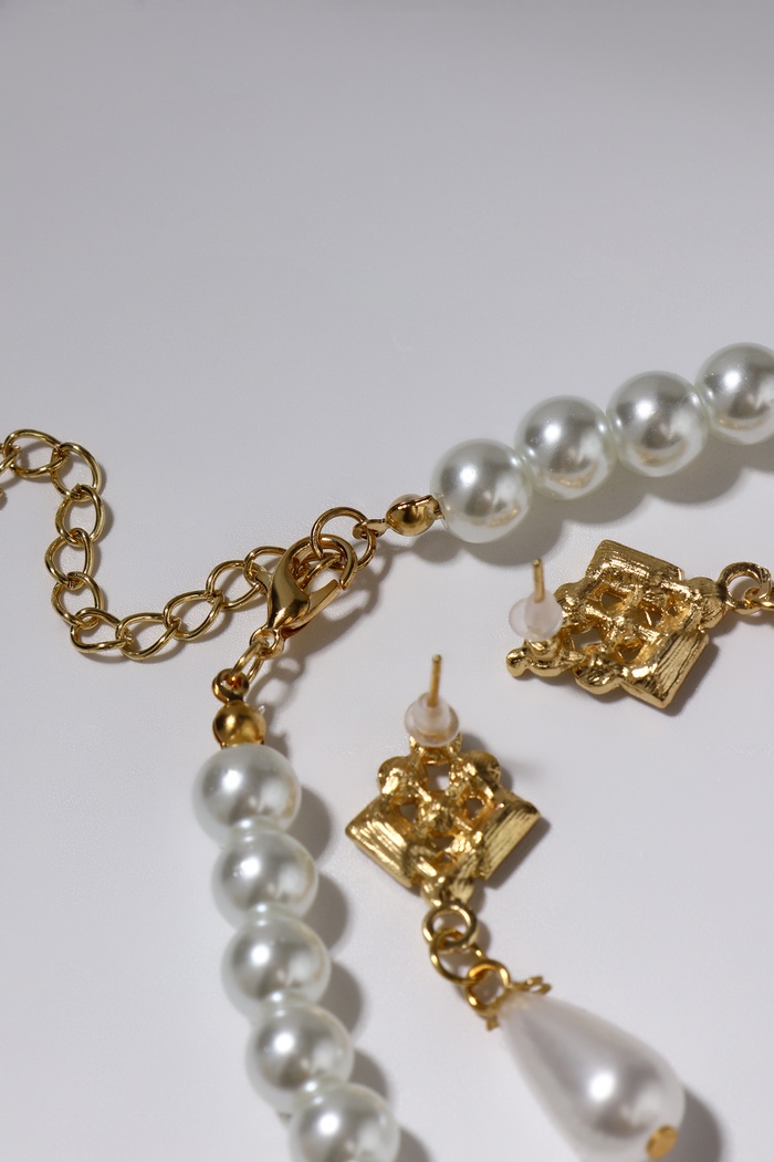 Набор 2 предмета: серьги, колье «Антуанетта» гранж, цвет белый в золоте, 40 см — Характеристики