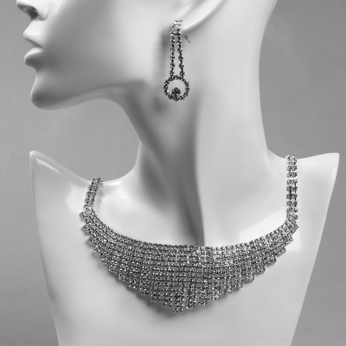 Набор из двух предметов: серьги и колье со стразами — это элегантный аксессуар с уникальным дизайном, который добавит сияния вашему образу. Этот комплект идеально подойдет для любого мероприятия, подчеркивая утонченность и стиль. Серьги и колье можно носить вместе или раздельно, дополняя образы для любого случая.