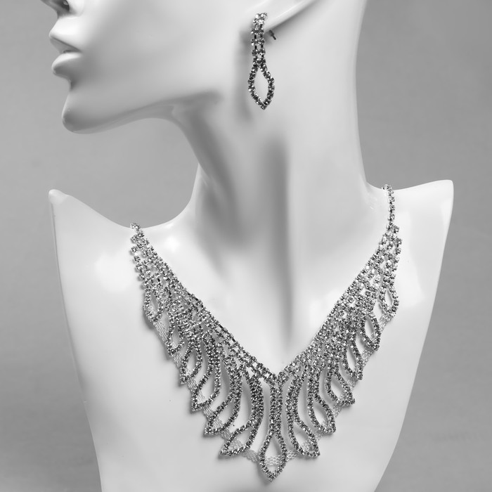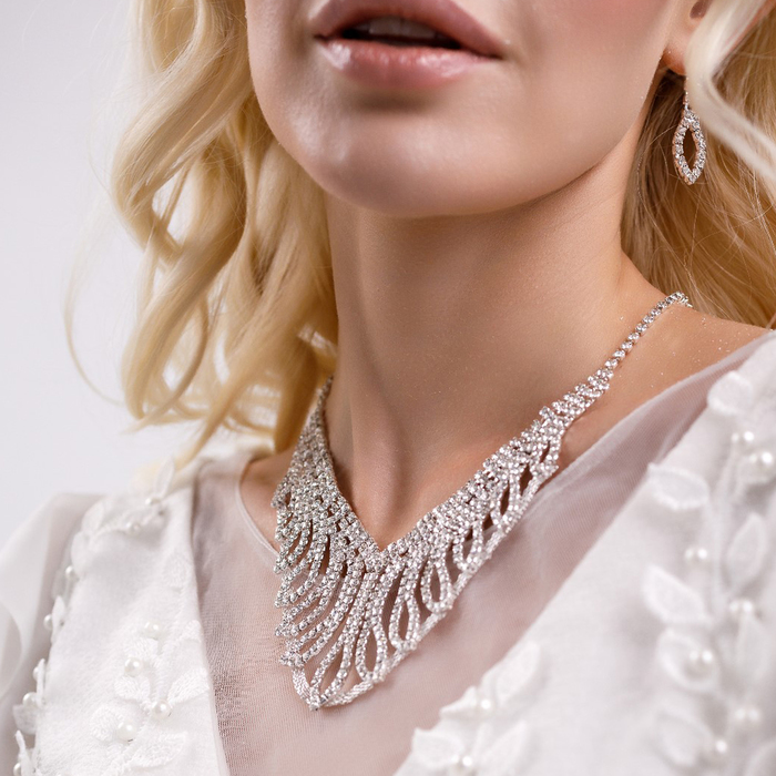 Набор 2 предмета: серьги, колье «Элегия» листья, цвет белый в серебре, 40 см — Характеристики