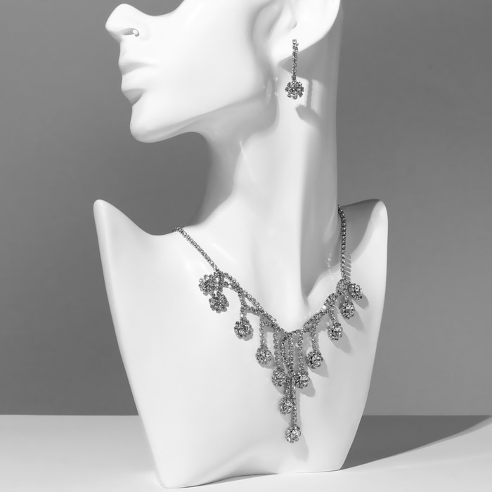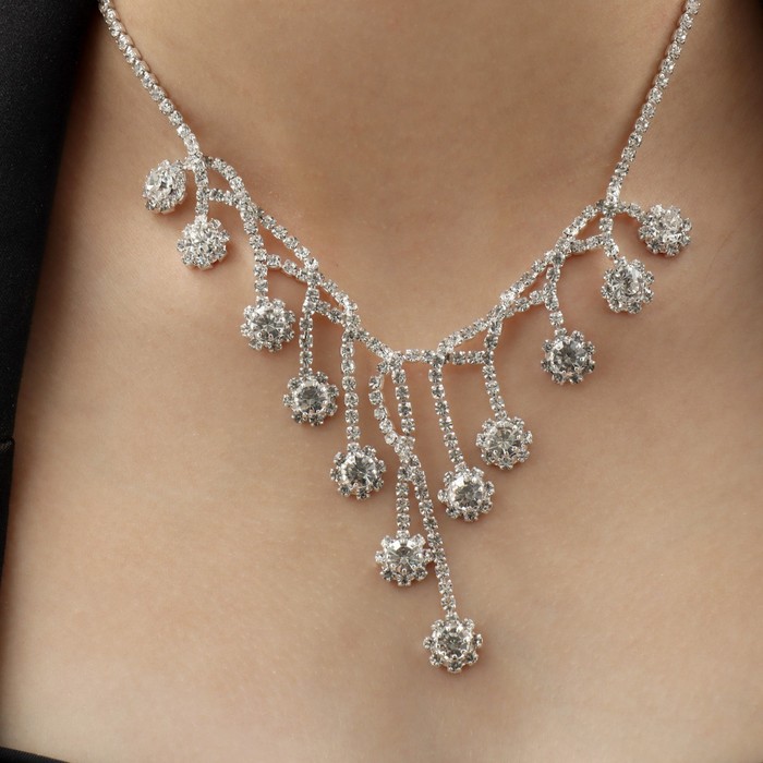 Набор 2 предмета: серьги, колье «Элит» водопад, цвет белый в серебре, 37 см — Характеристики