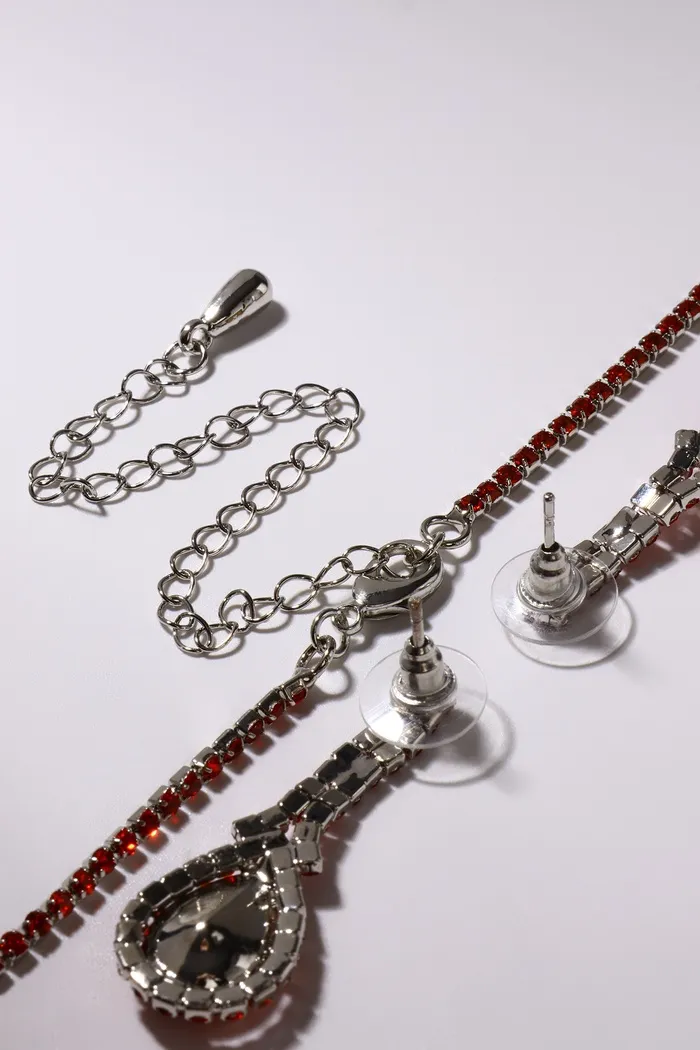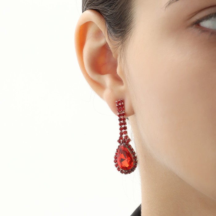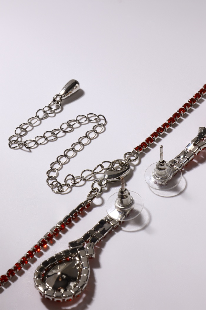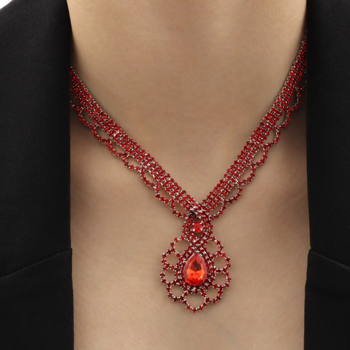 Набор 2 предмета: серьги, колье «Феникс» капля в стразах, цвет красный в серебре, 35 см — Характеристики