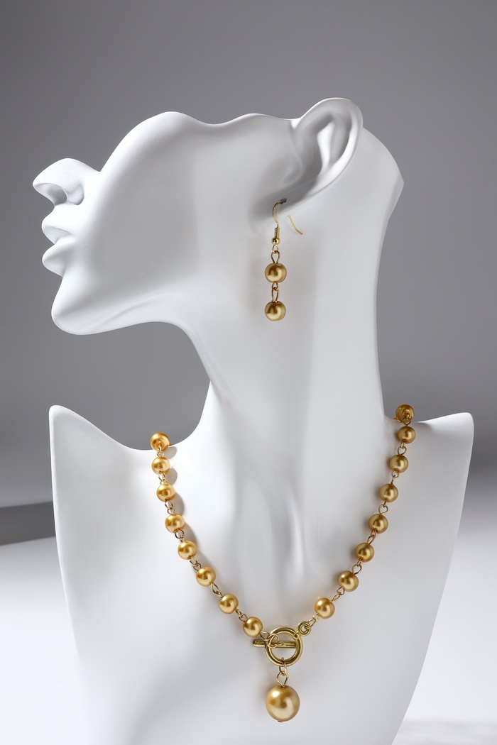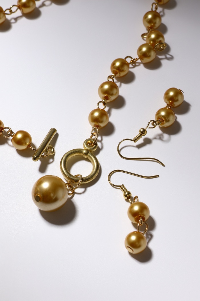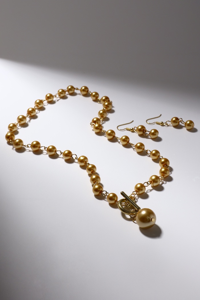 Набор 2 предмета: серьги, колье «Габриела» мелкие жемчужины, цвет светло-коричневый в золоте, 45 см — Характеристики