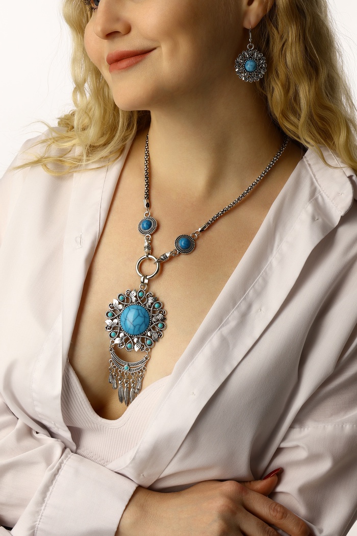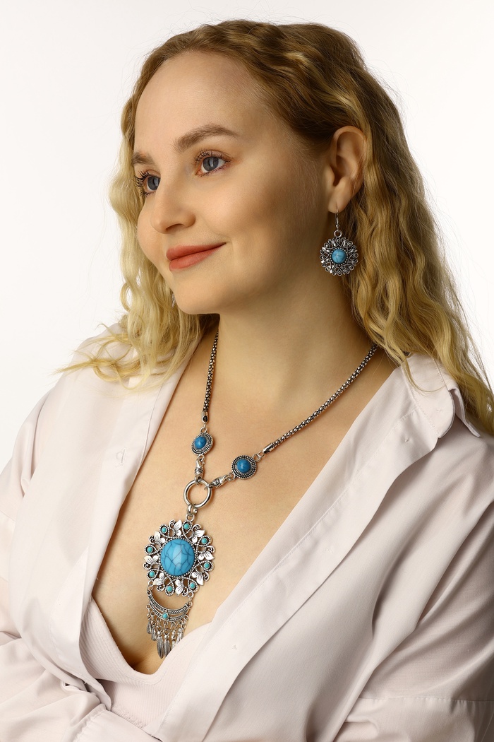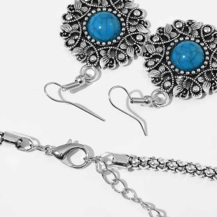 Набор 2 предмета: серьги, колье «Индия», цвет голубой в чернёном серебре, 50 см — Характеристики