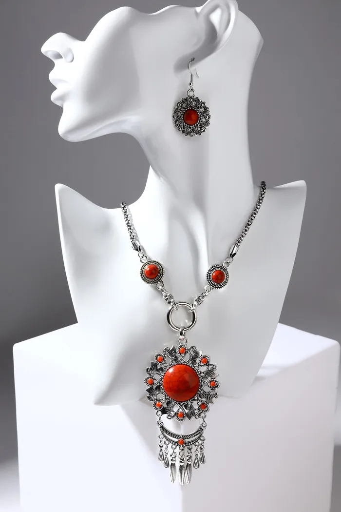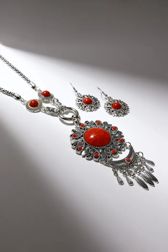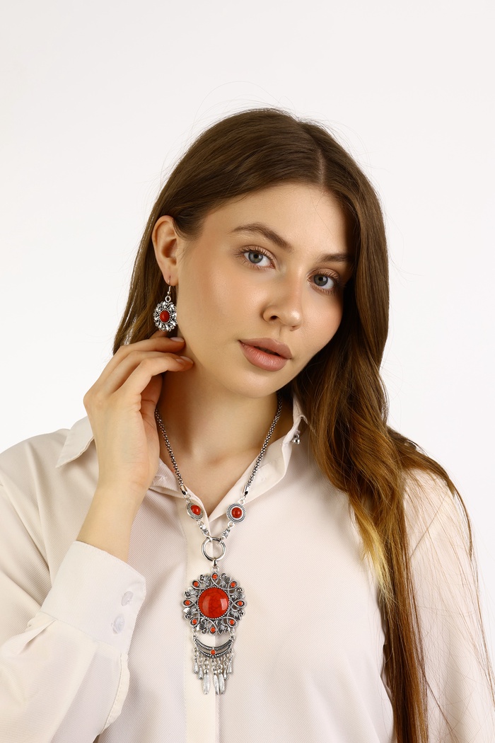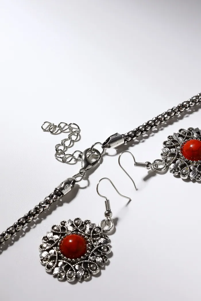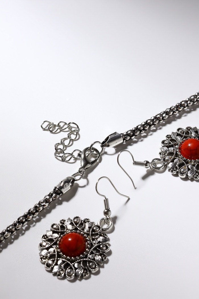 Набор 2 предмета: серьги, колье «Индия», цвет красный в чернёном серебре, 50 см — Характеристики