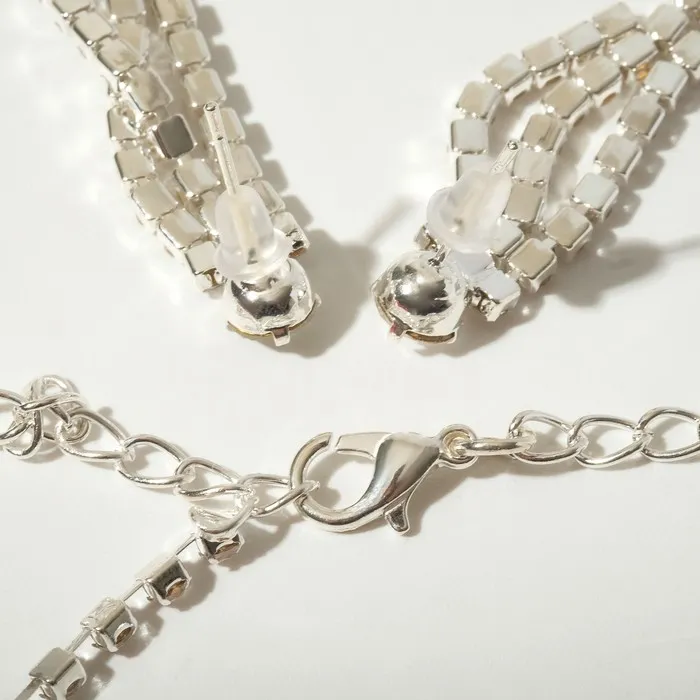 Набор из двух предметов: серьги и колье со стразами — это элегантный аксессуар с уникальным дизайном, который добавит сияния вашему образу. Этот комплект идеально подойдет для любого мероприятия, подчеркивая утонченность и стиль. Серьги и колье можно носить вместе или раздельно, дополняя образы для любого случая.