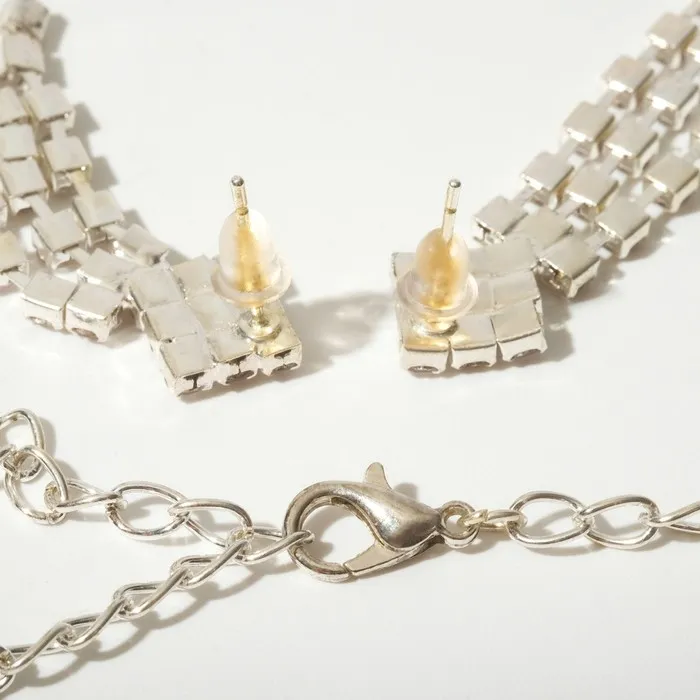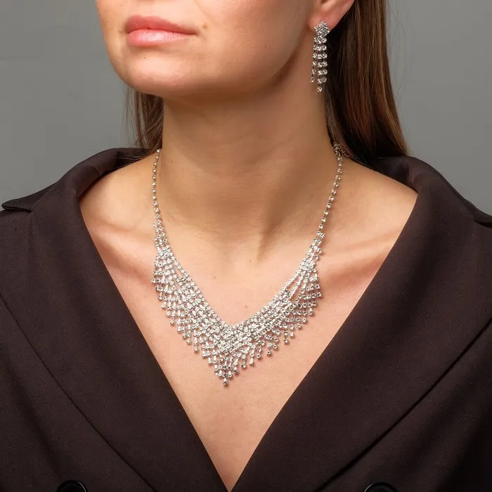 Набор из двух предметов: серьги и колье со стразами — это элегантный аксессуар с уникальным дизайном, который добавит сияния вашему образу. Этот комплект идеально подойдет для любого мероприятия, подчеркивая утонченность и стиль. Серьги и колье можно носить вместе или раздельно, дополняя образы для любого случая.