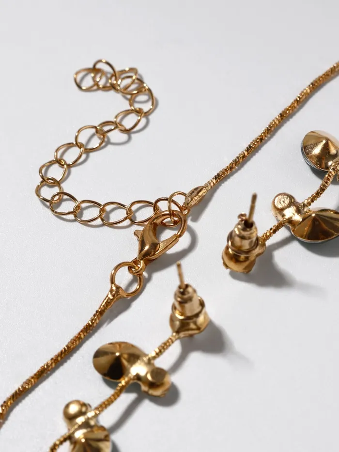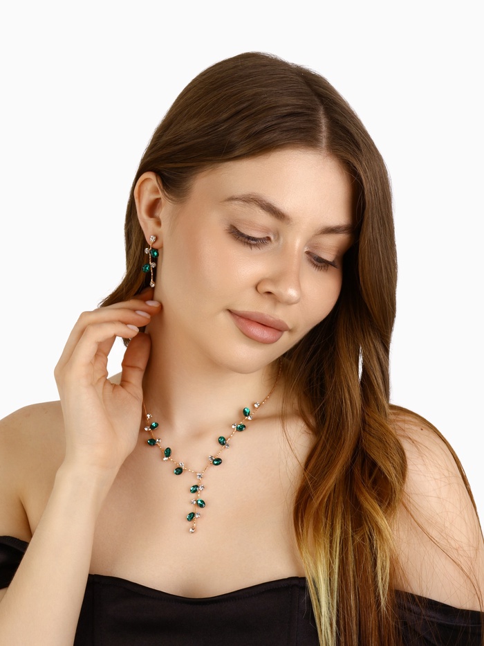 Набор из двух предметов: серьги и колье со стразами — это элегантный аксессуар с уникальным дизайном, который добавит сияния вашему образу. Этот комплект идеально подойдет для любого мероприятия, подчеркивая утонченность и стиль. Серьги и колье можно носить вместе или раздельно, дополняя образы для любого случая.
