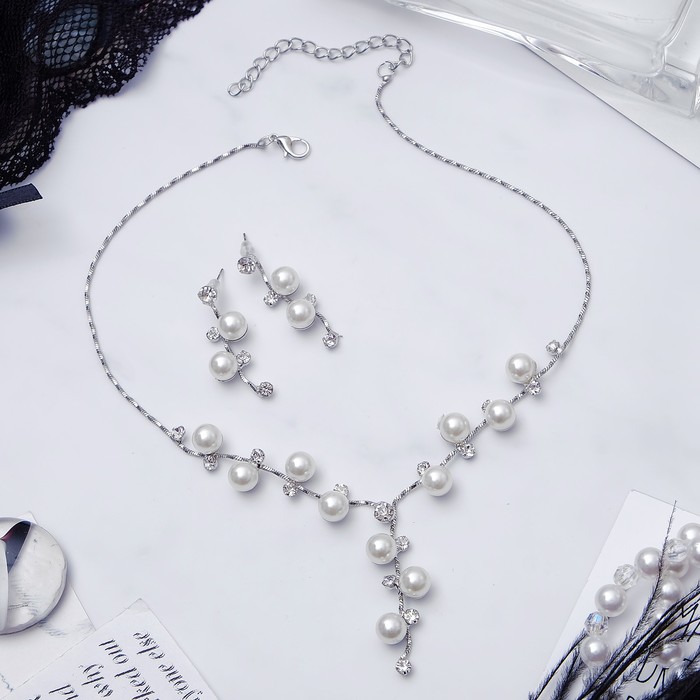 Набор 2 предмета: серьги, колье «Изумление» ветвь, цвет белый в серебре, 42см — Характеристики