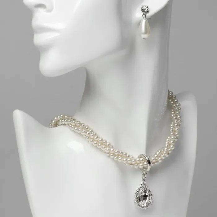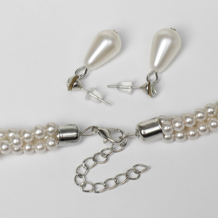 Набор 2 предмета: серьги, колье «Леди» кручение, капли, цвет белый в серебре, 45 см — Характеристики