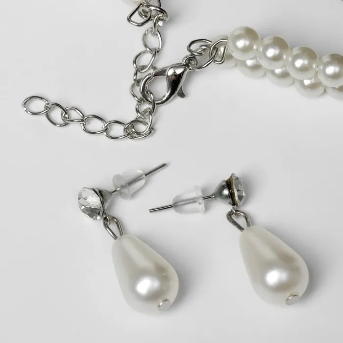 Набор 2 предмета: серьги, колье «Леди» ослепительный, цвет белый в серебре, 45 см — Характеристики