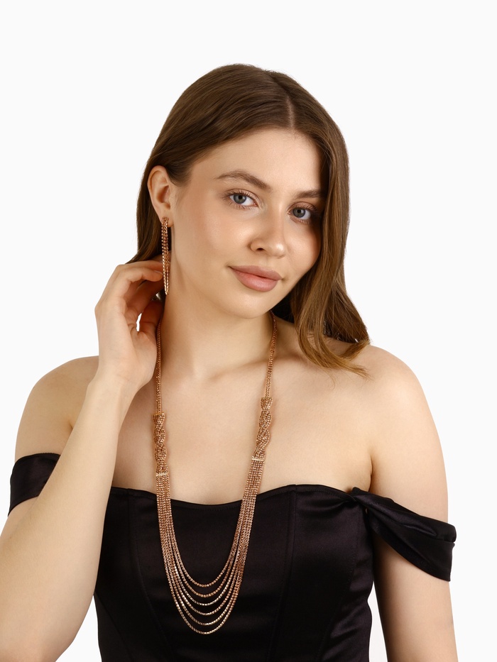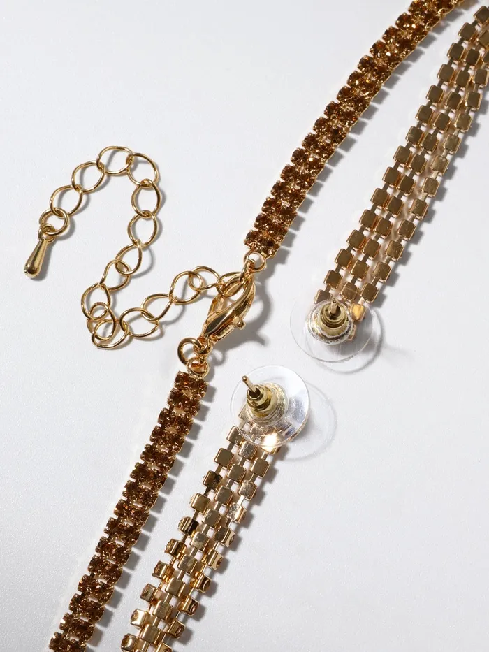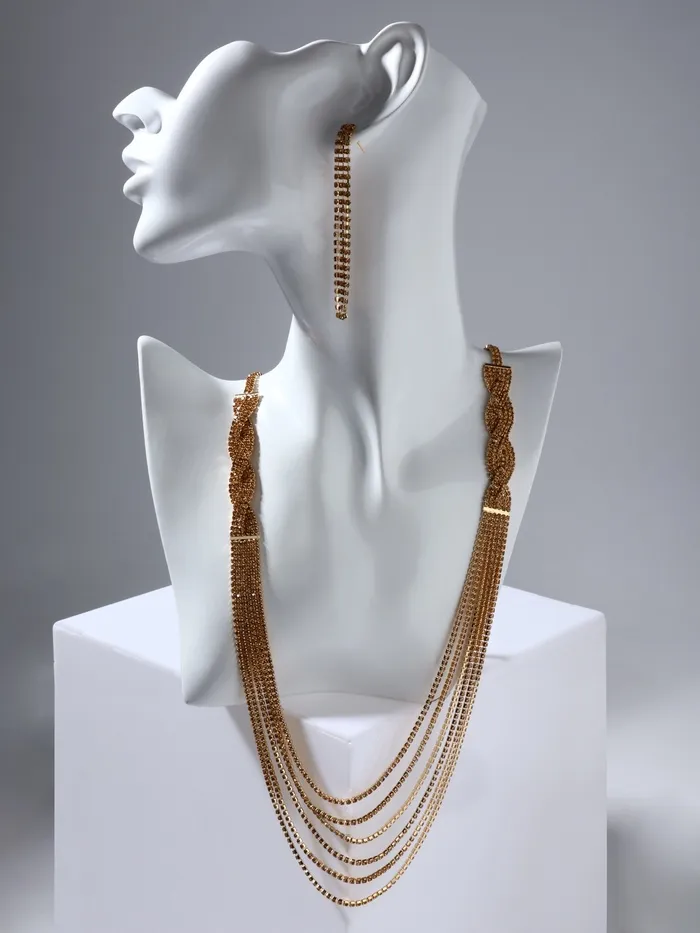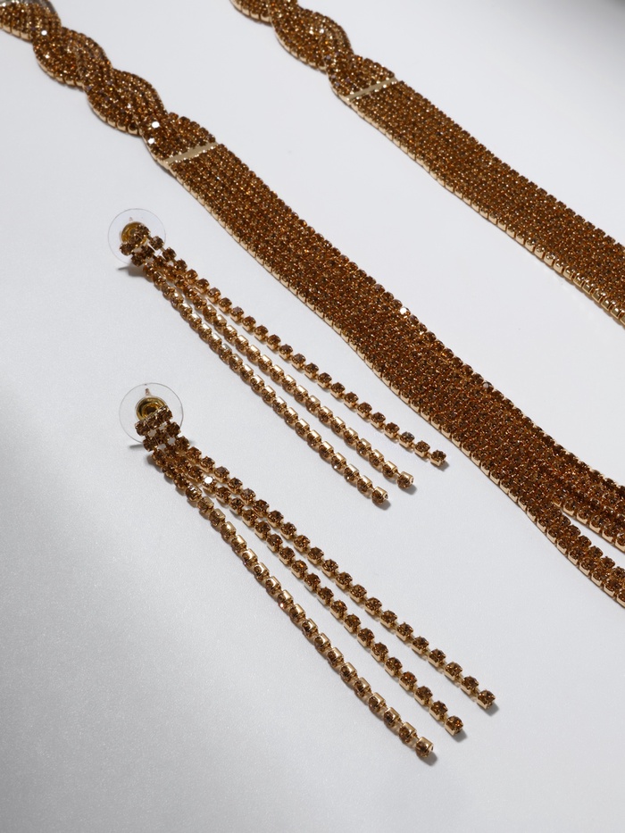 Набор из двух предметов: серьги и колье со стразами — это элегантный аксессуар с уникальным дизайном, который добавит сияния вашему образу. Этот комплект идеально подойдет для любого мероприятия, подчеркивая утонченность и стиль. Серьги и колье можно носить вместе или раздельно, дополняя образы для любого случая.