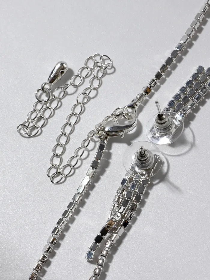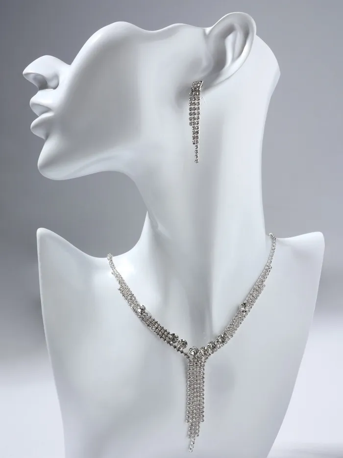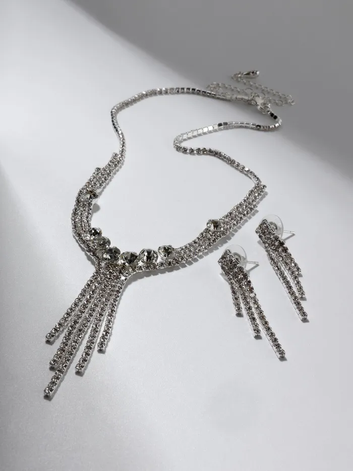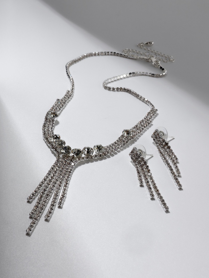 Набор из двух предметов: серьги и колье со стразами — это элегантный аксессуар с уникальным дизайном, который добавит сияния вашему образу. Этот комплект идеально подойдет для любого мероприятия, подчеркивая утонченность и стиль. Серьги и колье можно носить вместе или раздельно, дополняя образы для любого случая.