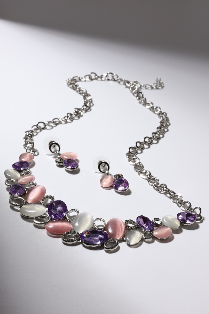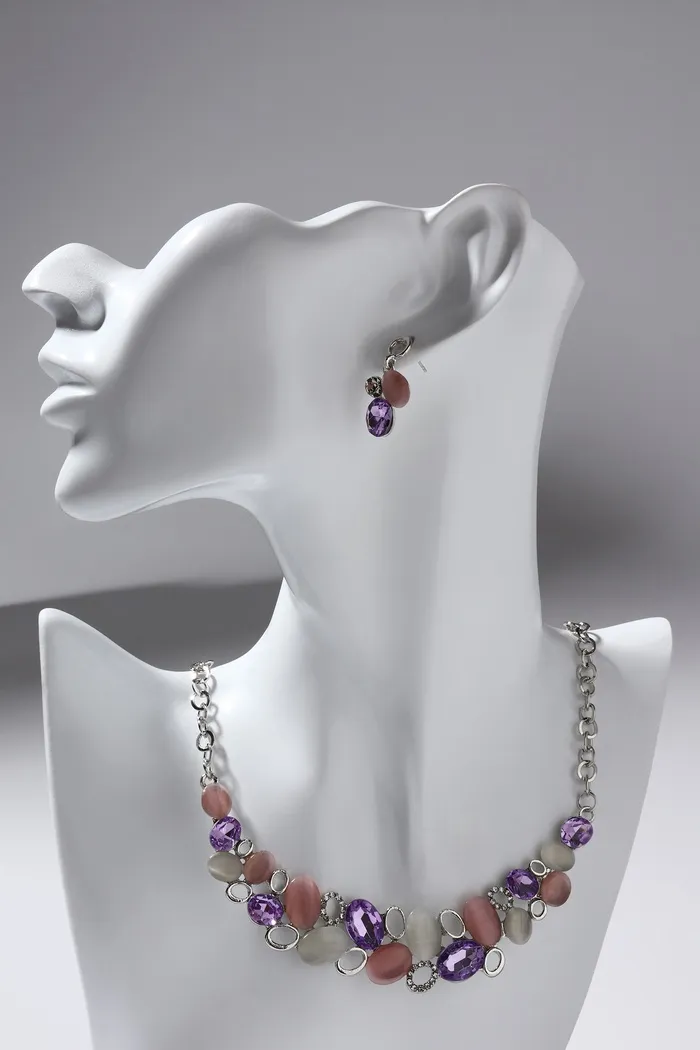 Бижутерный набор из двух предметов: серьги и колье — идеальное дополнение к вашему образу! Этот стильный аксессуар можно носить как вместе, так и по отдельности. Благодаря высококачественным материалам и профессиональному исполнению, наш набор станет изюминкой вашего гардероба. Добавьте его в свою коллекцию украшений и наслаждайтесь восхищёнными взглядами окружающих!