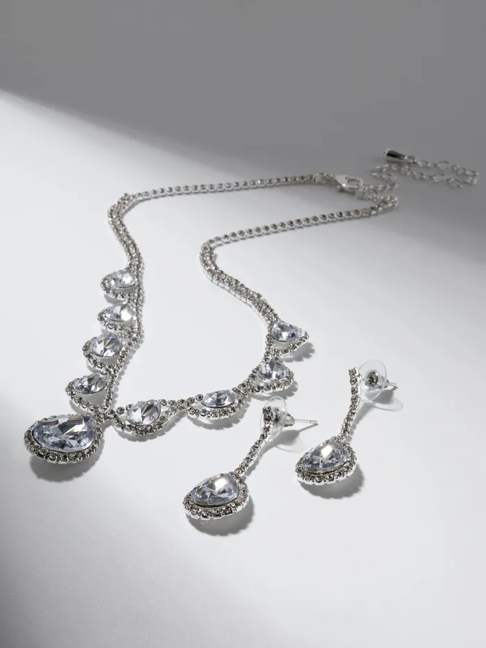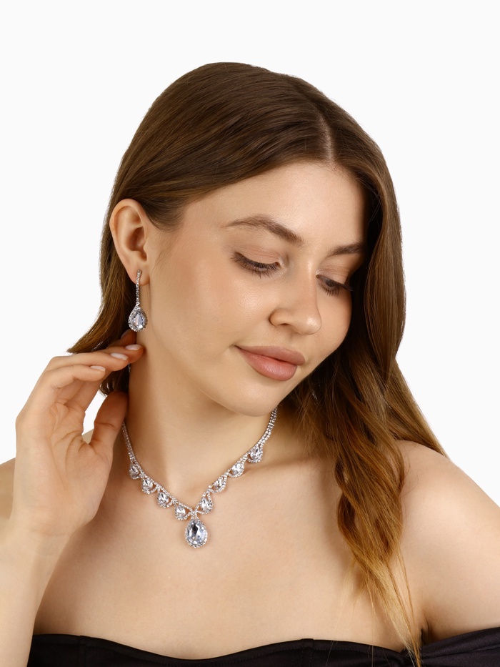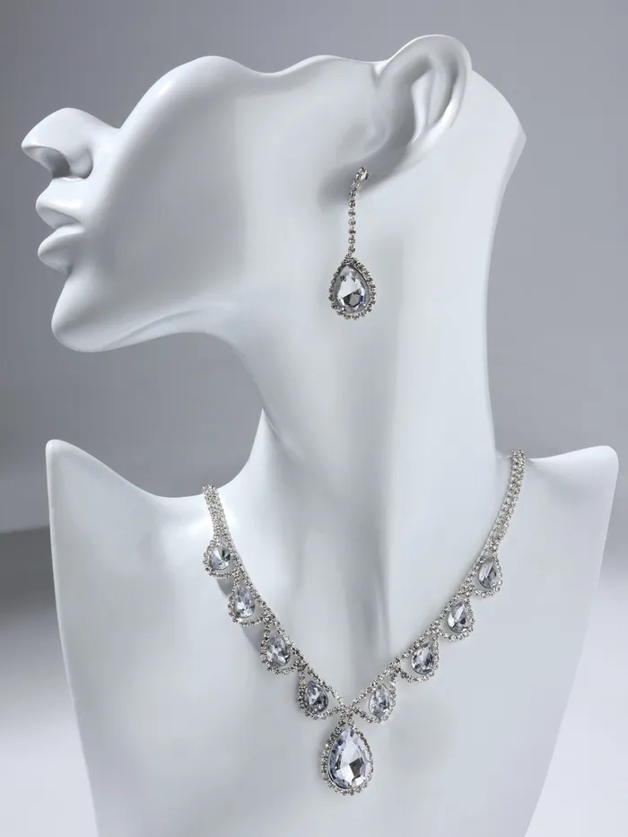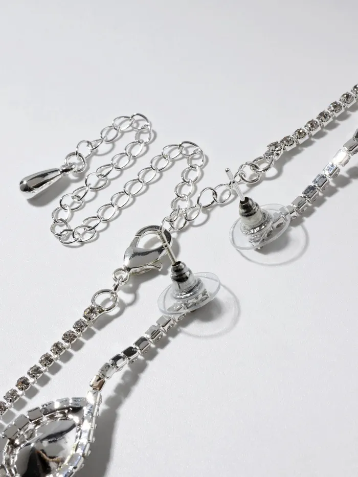 Набор из двух предметов: серьги и колье со стразами — это элегантный аксессуар с уникальным дизайном, который добавит сияния вашему образу. Этот комплект идеально подойдет для любого мероприятия, подчеркивая утонченность и стиль. Серьги и колье можно носить вместе или раздельно, дополняя образы для любого случая.