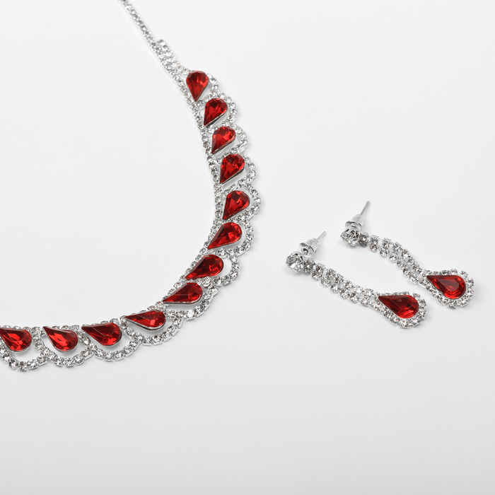 Набор 2 предмета: серьги, колье «Листопад» капли, цвет красно-белый в серебре, 45см — Характеристики
