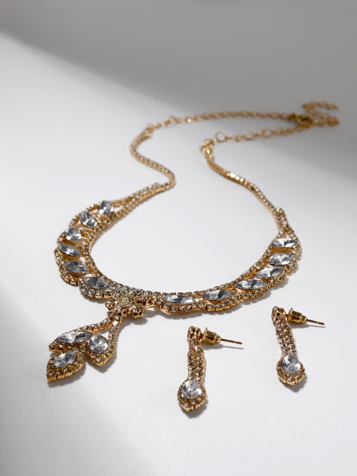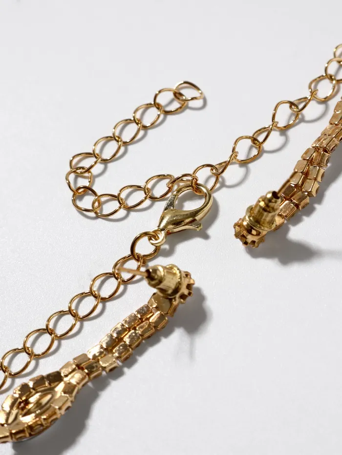 Набор из двух предметов: серьги и колье со стразами — это элегантный аксессуар с уникальным дизайном, который добавит сияния вашему образу. Этот комплект идеально подойдет для любого мероприятия, подчеркивая утонченность и стиль. Серьги и колье можно носить вместе или раздельно, дополняя образы для любого случая.