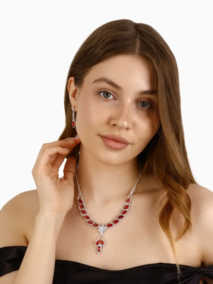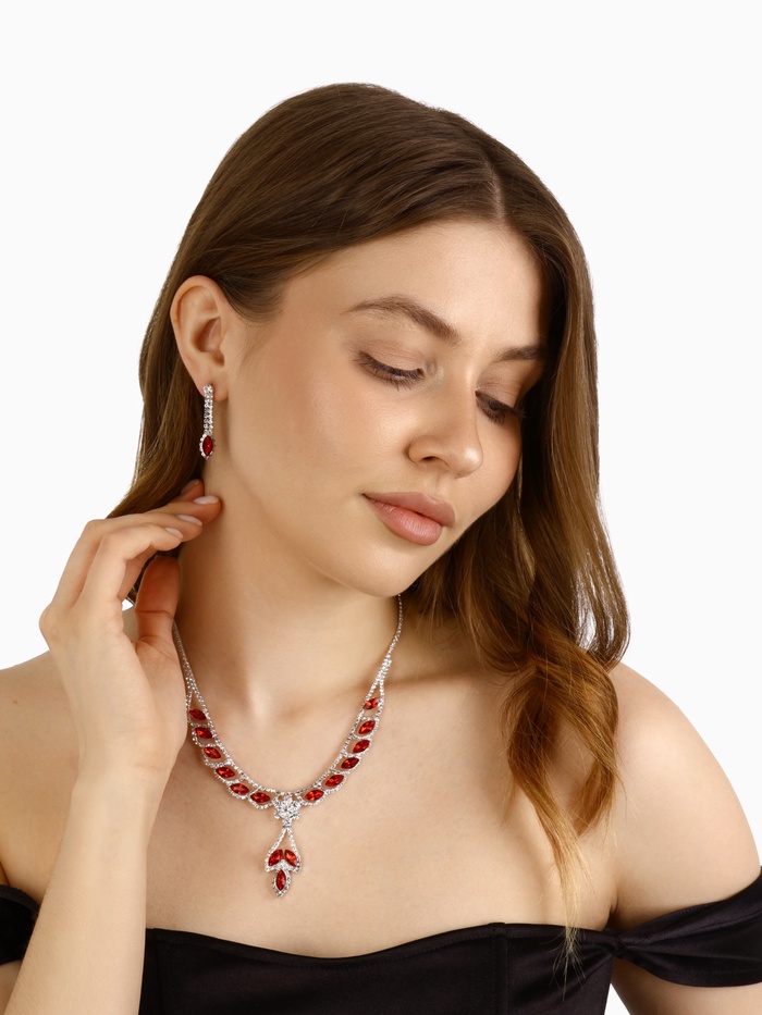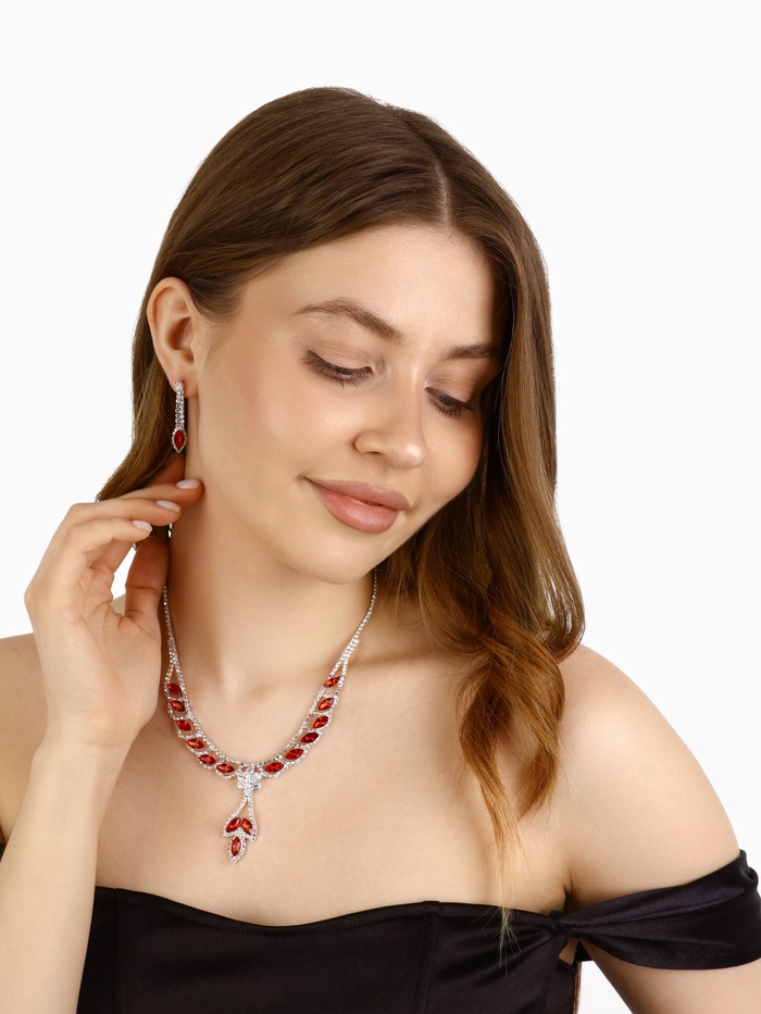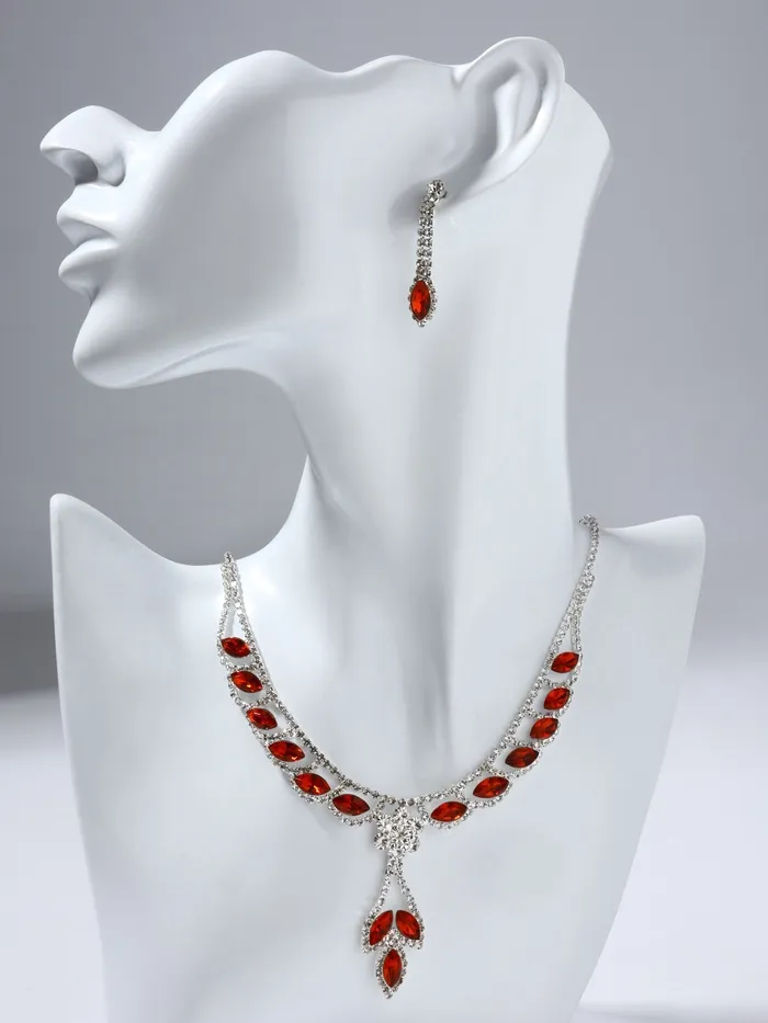 Набор 2 предмета: серьги, колье «Листопад» ромб, цвет красно-белый в серебре, 45 см — Характеристики