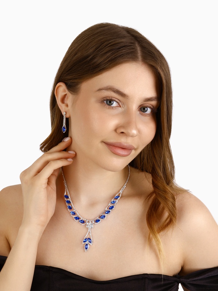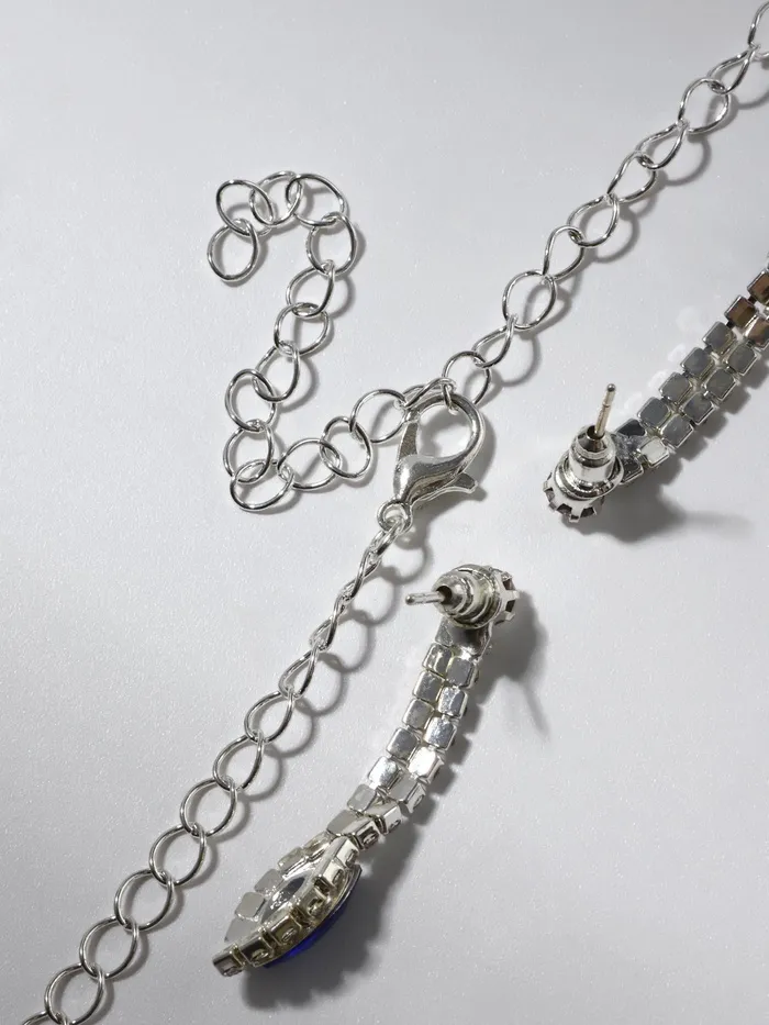 Набор из двух предметов: серьги и колье со стразами — это элегантный аксессуар с уникальным дизайном, который добавит сияния вашему образу. Этот комплект идеально подойдет для любого мероприятия, подчеркивая утонченность и стиль. Серьги и колье можно носить вместе или раздельно, дополняя образы для любого случая.