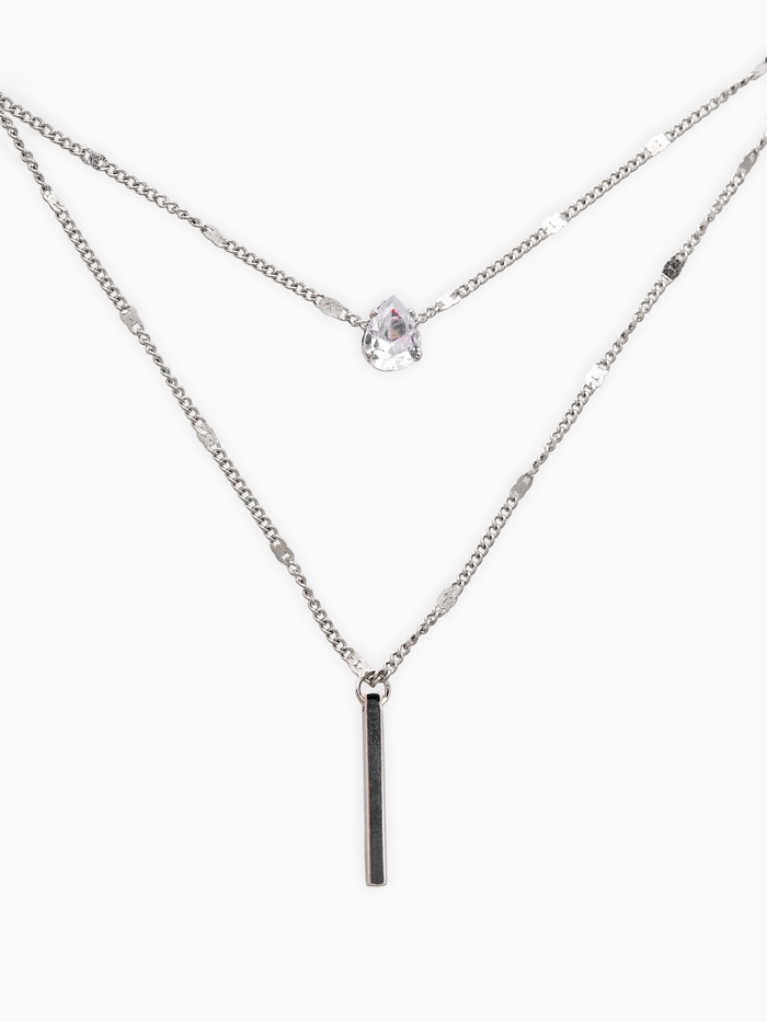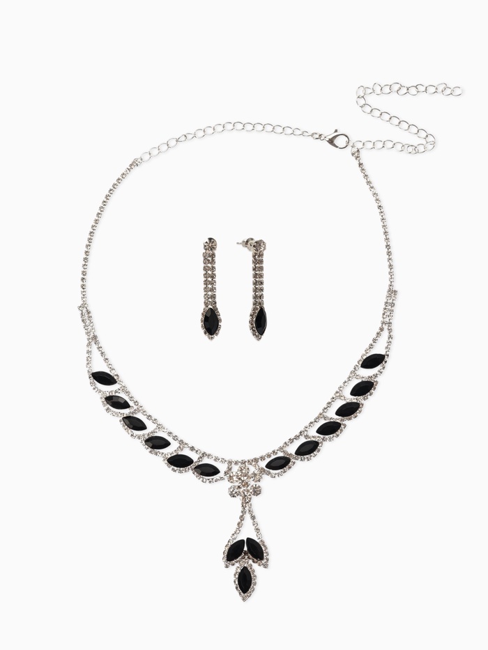 Совершенство минимализма воплотилось в наборе из двух стильных украшений: серьги и колье, выполненных в холодном серебристом цвете. Нежные линии, простота форм и стеклянные подвески вносят в образ нотки утончённости и элегантности.