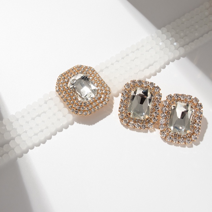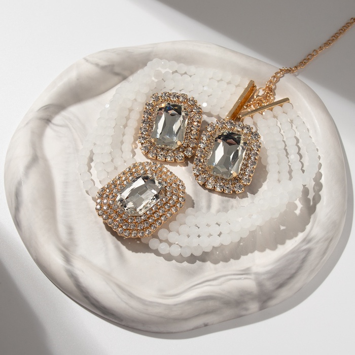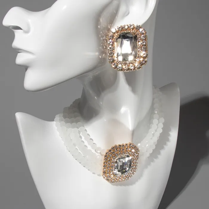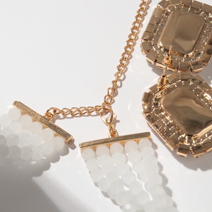 Набор 2 предмета: серьги, колье «Роскошь» крупный камень, цвет белый в золоте, 42 см — Характеристики