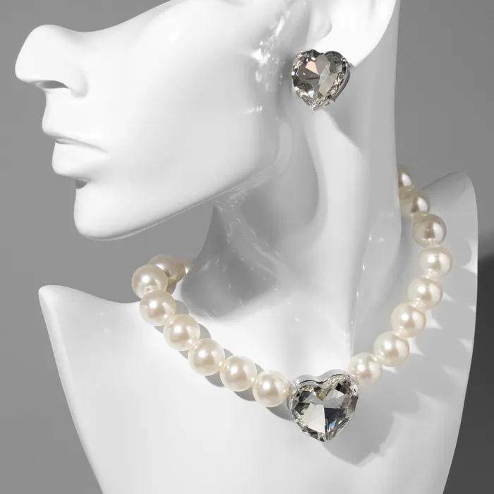 Откройте для себя мир изысканности и утончённости с великолепным набором, который включает серьги и колье в форме сердца. Этот комплект, выполненный из белого жемчуга и обрамлённый серебристой фурнитурой, станет идеальным дополнением к любому наряду и подчеркнёт вашу женственность.