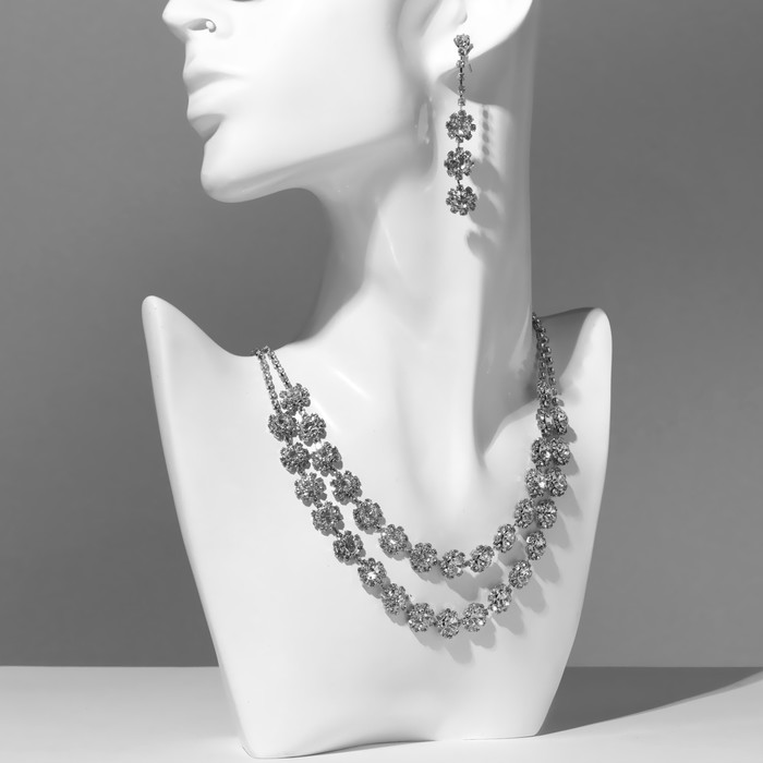 Набор 2 предмета: серьги, колье «Шик» круг, цвет белый в серебре, 30 см — Характеристики