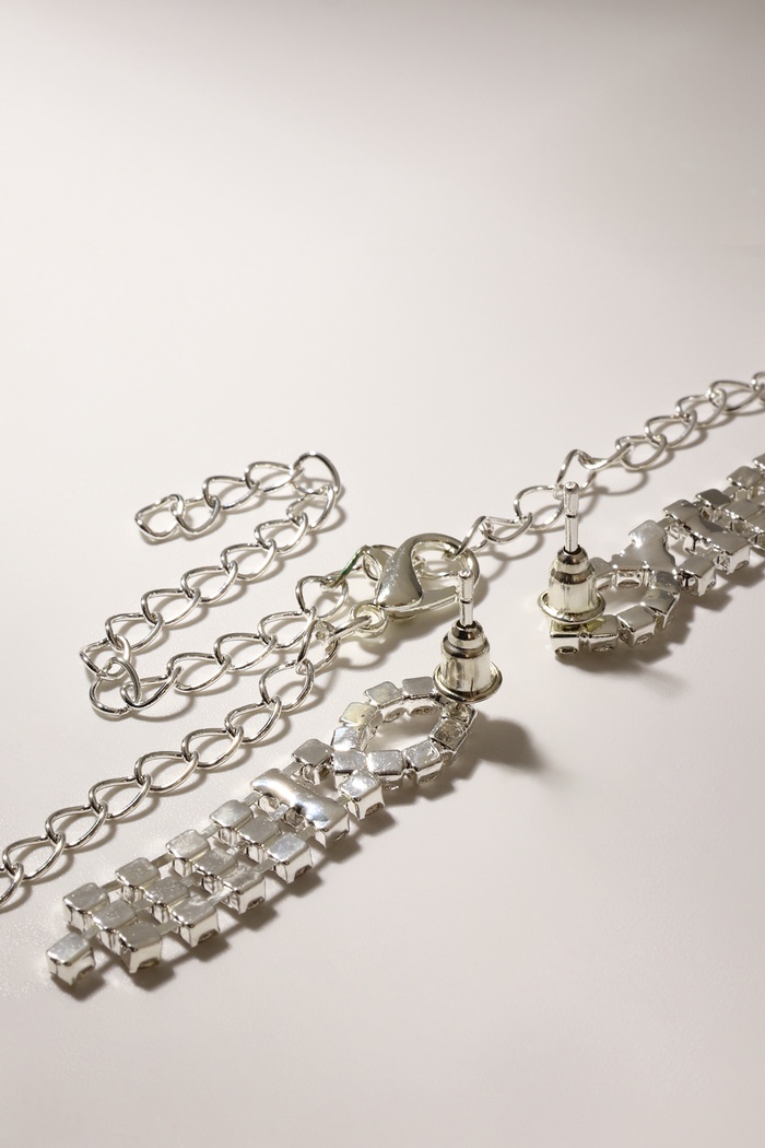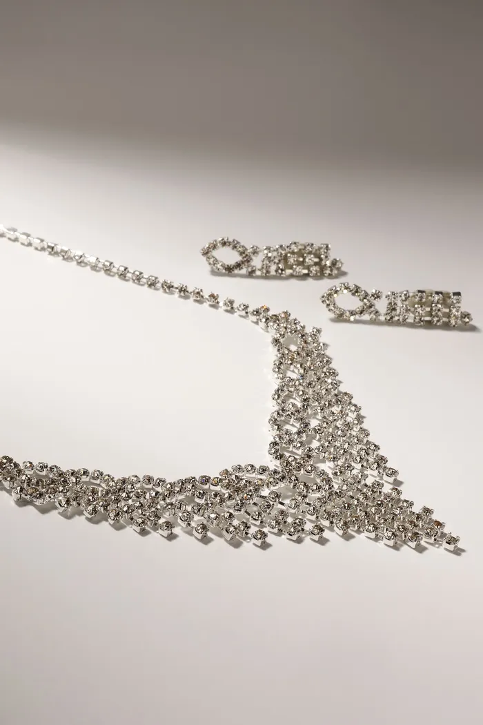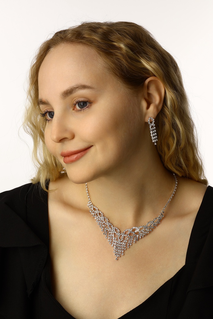 Набор из двух предметов: серьги и колье со стразами — это элегантный аксессуар с уникальным дизайном, который добавит сияния вашему образу. Этот комплект идеально подойдет для любого мероприятия, подчеркивая утонченность и стиль. Серьги и колье можно носить вместе или раздельно, дополняя образы для любого случая.
