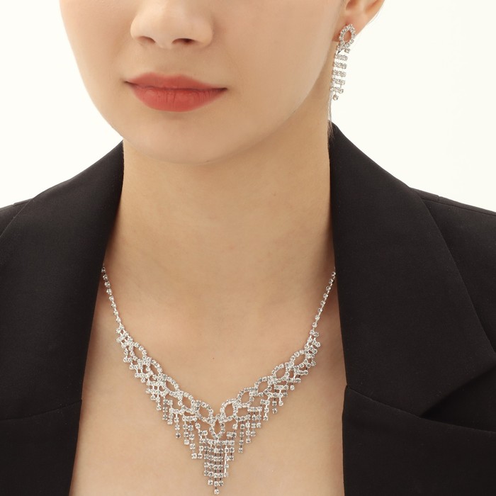 Набор 2 предмета: серьги, колье «Сияй» Анита, цвет белый в серебре, 45 см — Характеристики