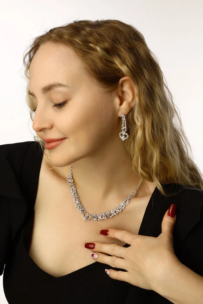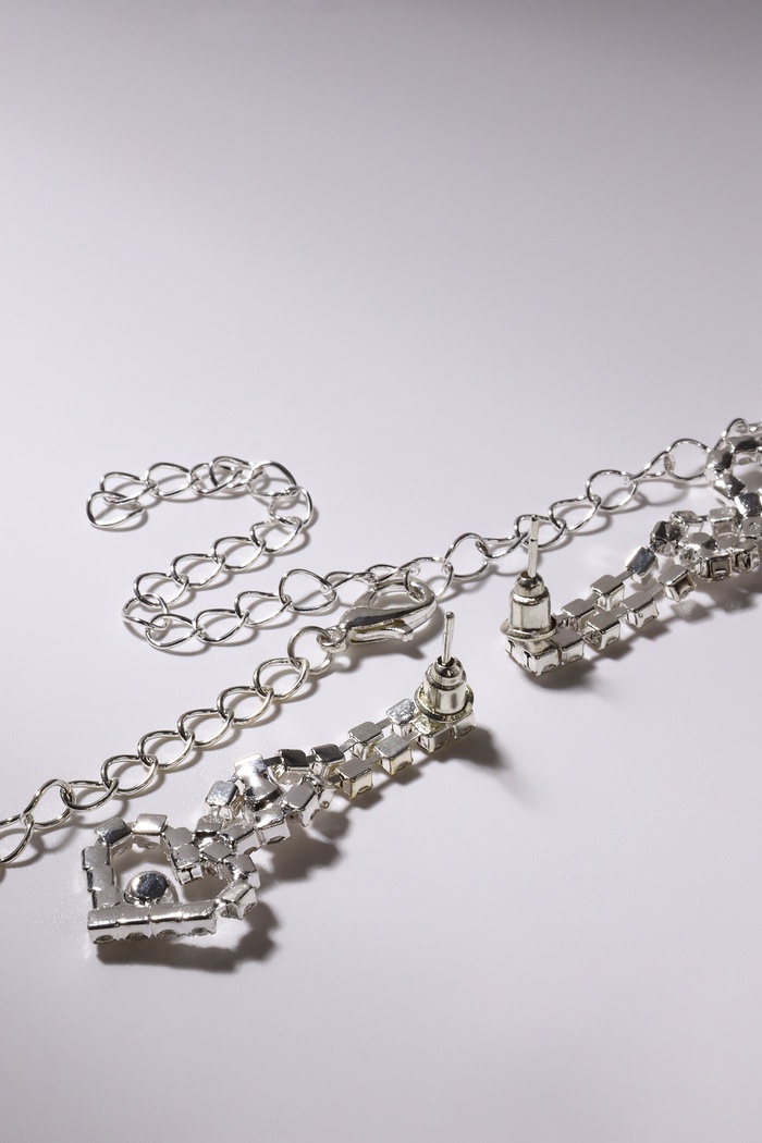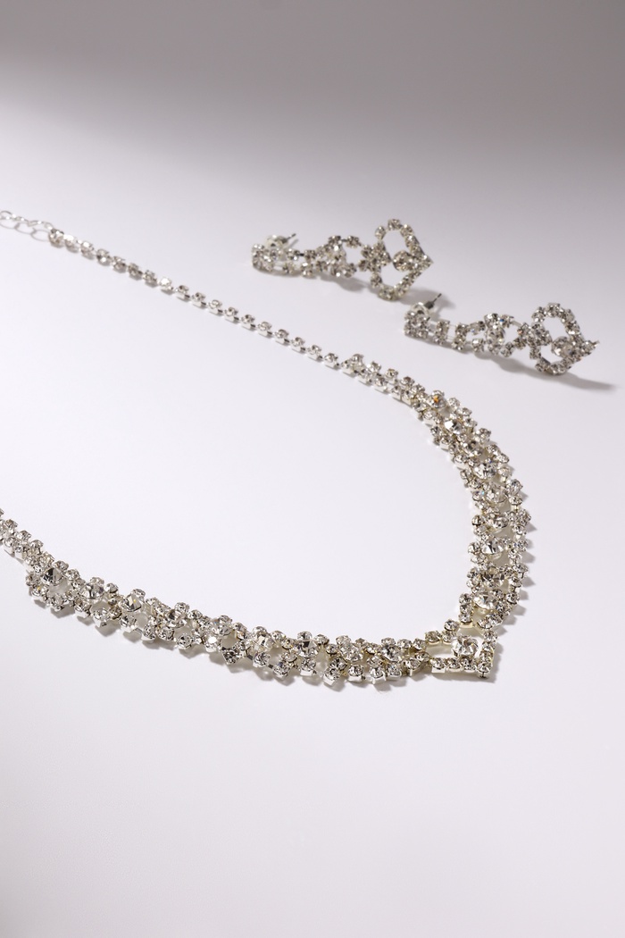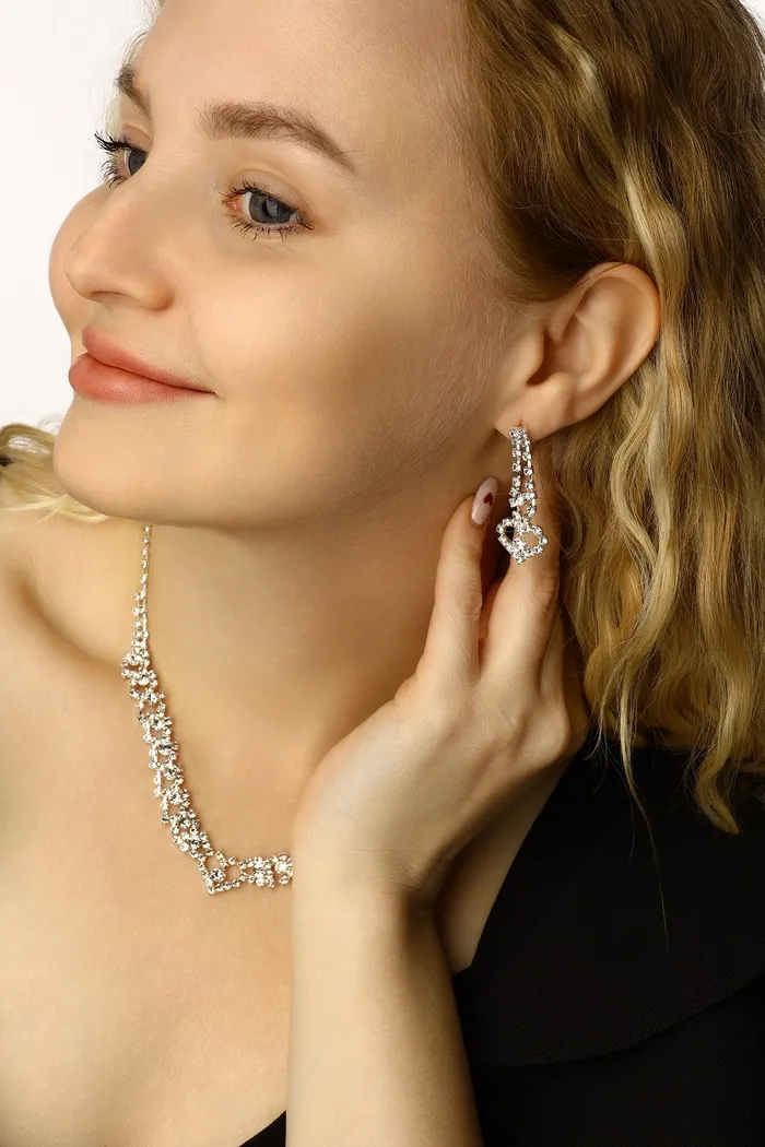 Набор из двух предметов: серьги и колье со стразами — это элегантный аксессуар с уникальным дизайном, который добавит сияния вашему образу. Этот комплект идеально подойдет для любого мероприятия, подчеркивая утонченность и стиль. Серьги и колье можно носить вместе или раздельно, дополняя образы для любого случая.