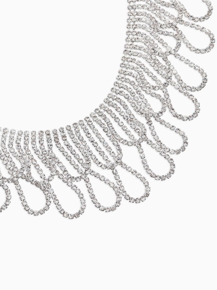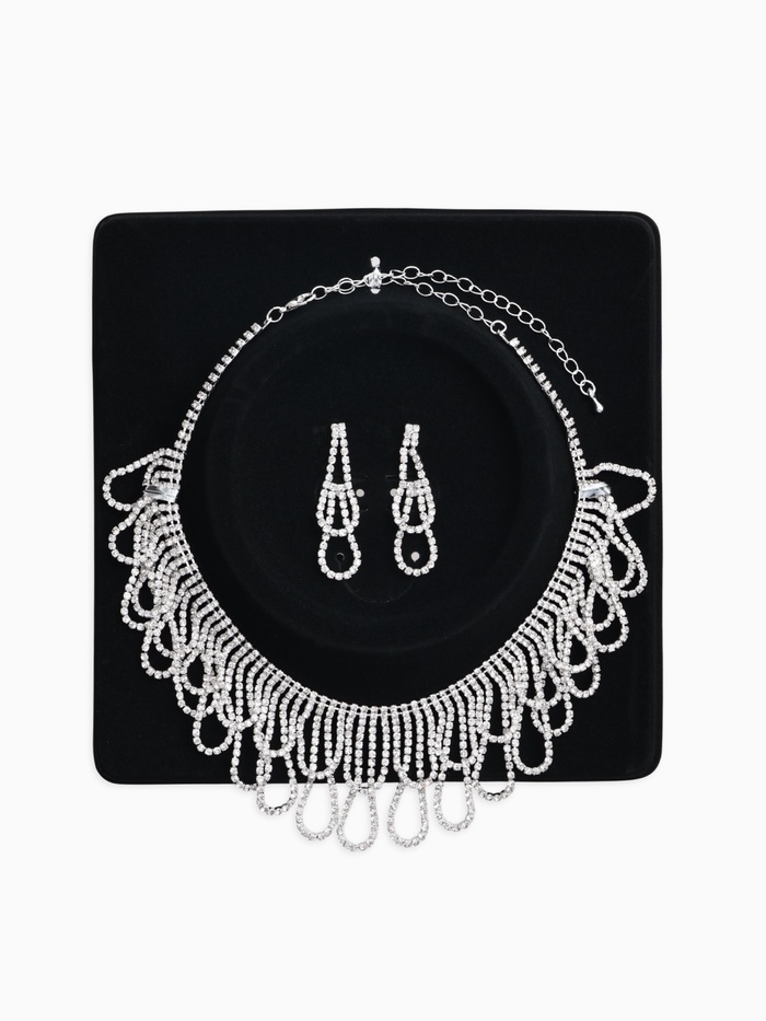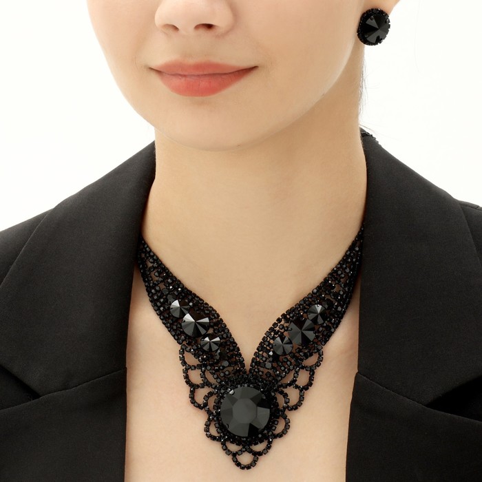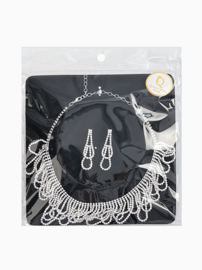 Набор 2 предмета: серьги, колье со стразами «Лёд». d=13.5 см, белый в серебре — Характеристики
